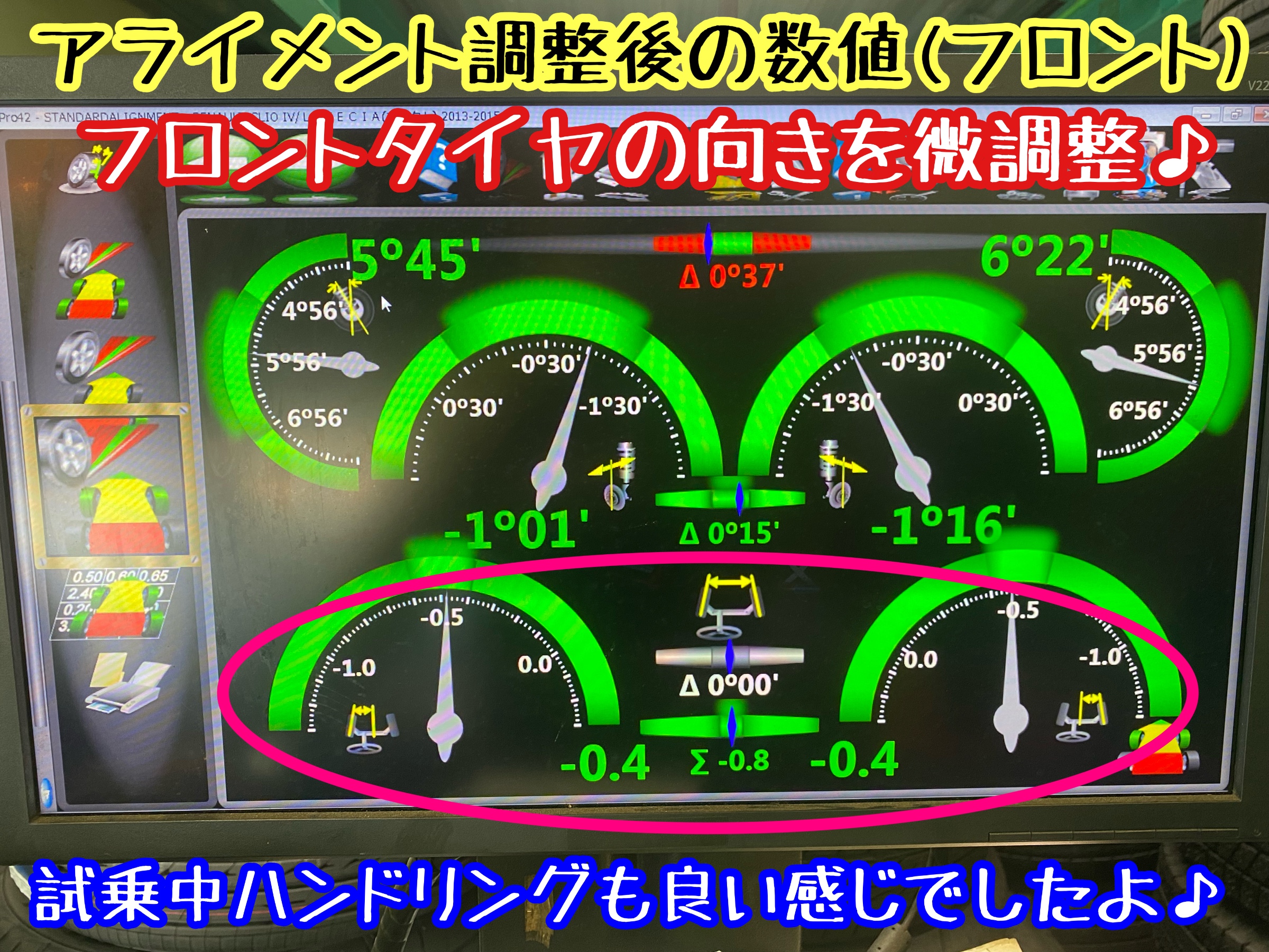 タイヤに前後入れ替えローテーション…ハブ防錆→アライメント測定&調整になります。