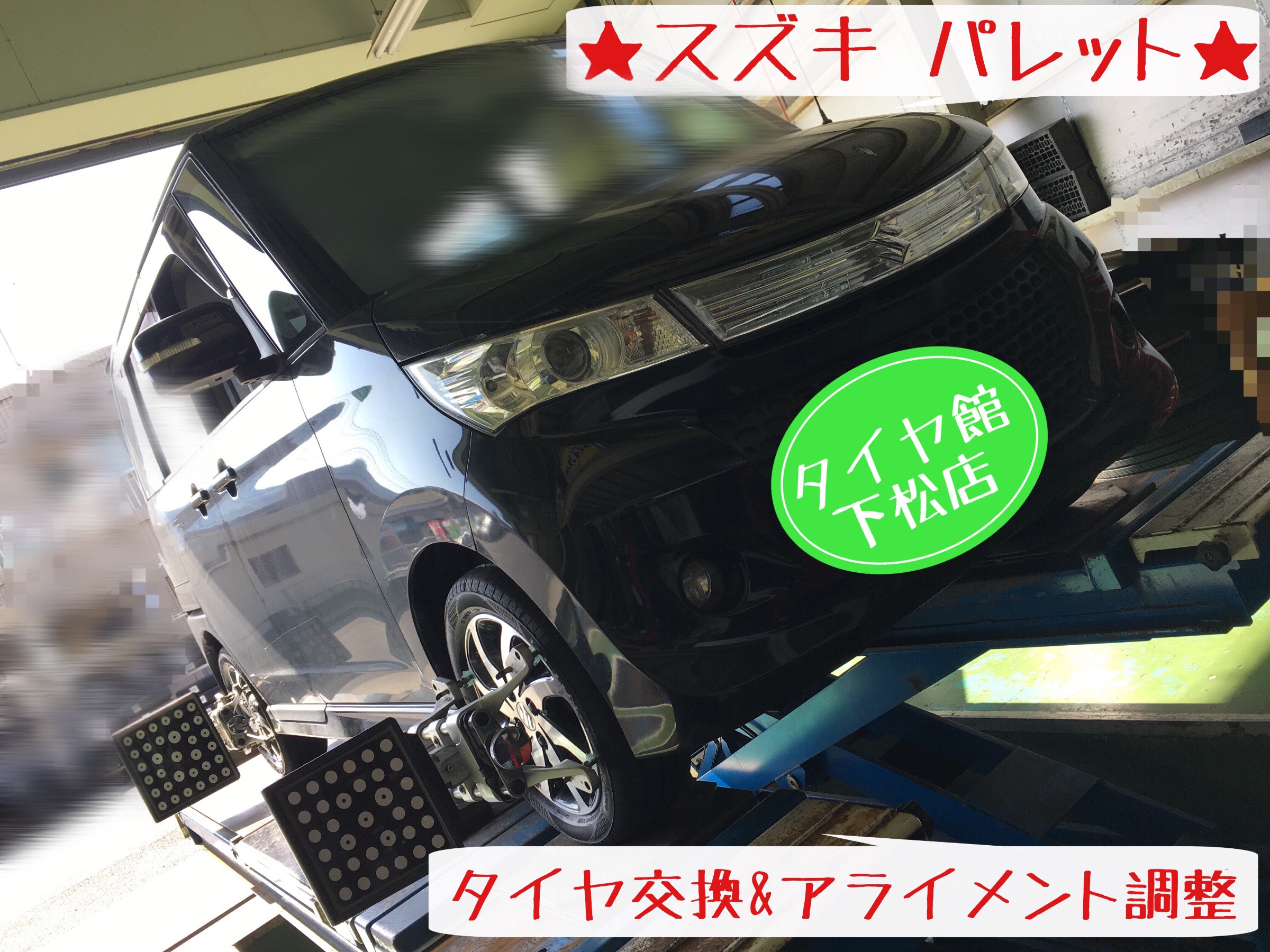 下松市 周南市周辺で スズキ パレット タイヤ交換 ホイール交換 オイル交換 バッテリー交換 ワイパー交換 エアコンフィルター交換 アライメント調整 タイヤ履き替え 脱着 付け替え モボックス など検討されている方は タイヤ館下松店 スタッフまで気軽に相談して下さいね♪