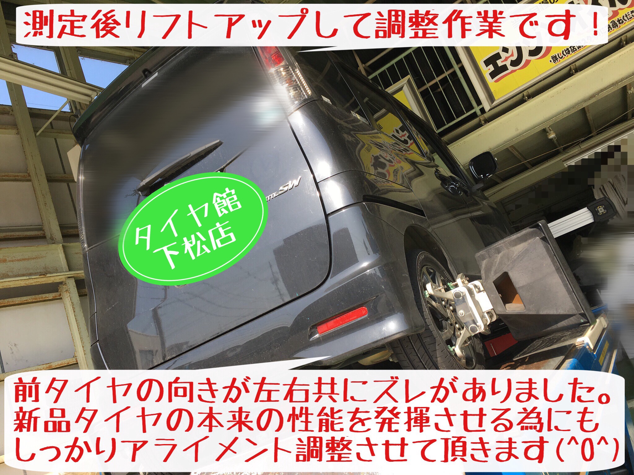 スズキ パレット タイヤ交換&アライメント調整実施。