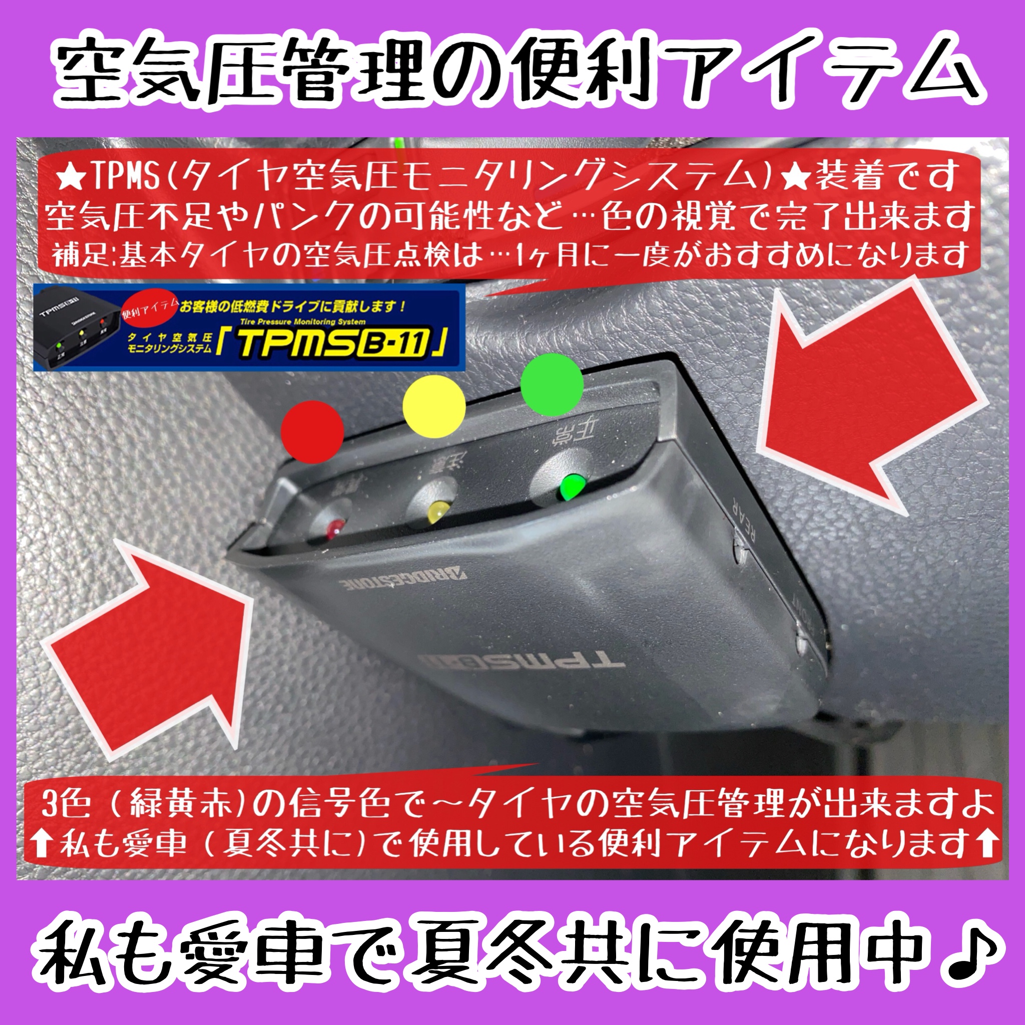 私も愛車で夏冬タイヤで使用中の便利アイテム★タイヤ空気圧モニタリングシステム〜TPMSの紹介になります♪