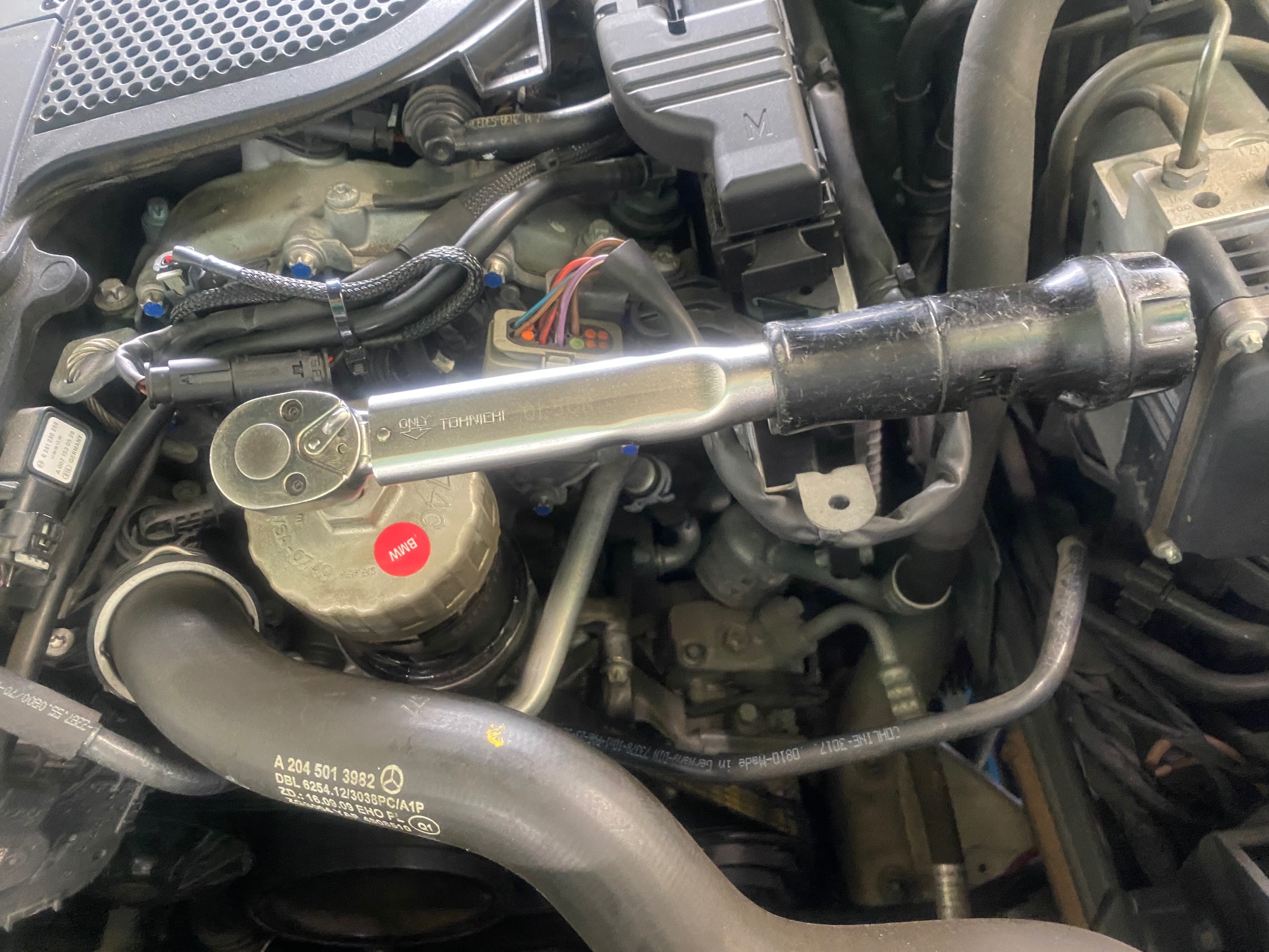 メルセデス・ベンツ Eクラス W212型 定期的なエンジンオイル交換&オイルエレメント交換実施。
