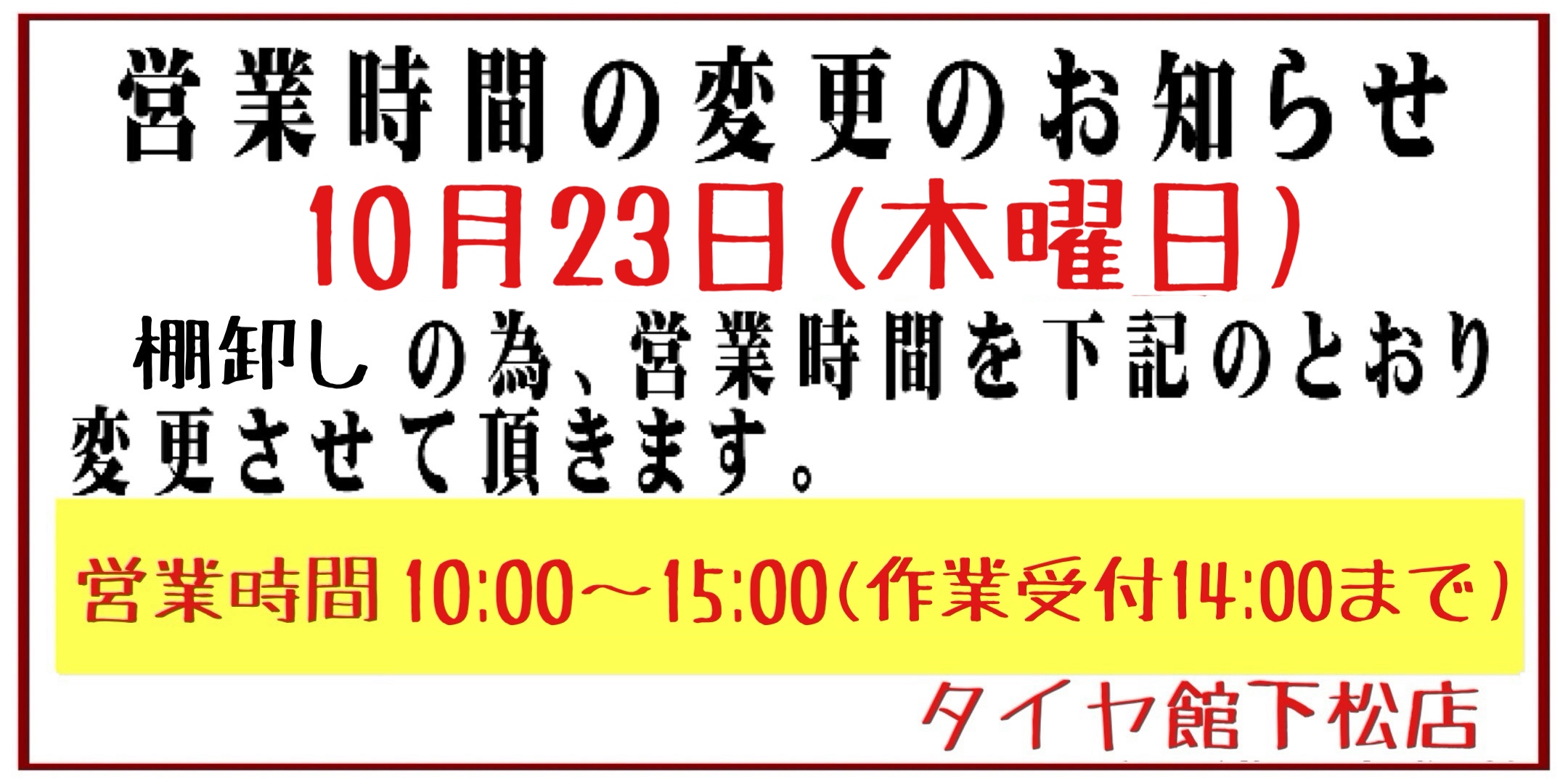 店舗からのお知らせ ポスト 2025年10月13日 店舗からのお知らせ タイヤ館 下松 住所:744-0041山口県下松市大字山田93-1 電話番号: 0833-46-0887 カテゴリ:お知らせ 担当:越智