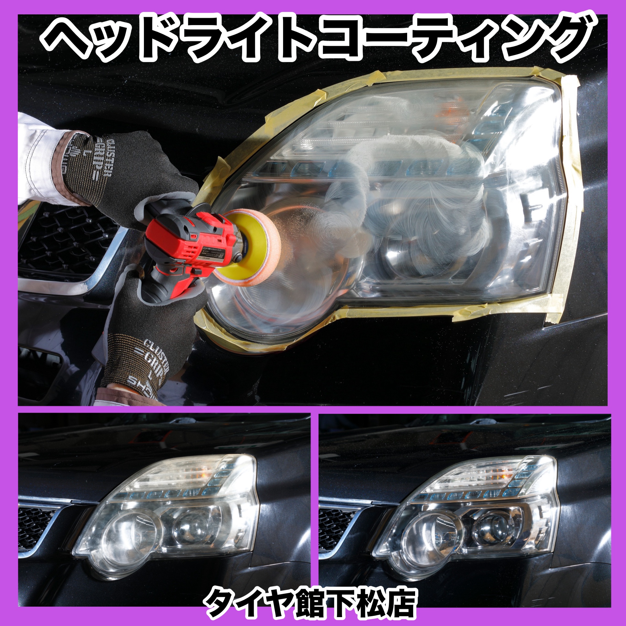 補足:タイヤ館下松店でのヘッドライトクリーニングやヘッドライトコーティングは簡易的な施工になりますので…新品同様の状態を希望される方は〜ライト本体の新品への部品交換や専門業者へのヘッドライトコーティングの施工依頼が必要になります。