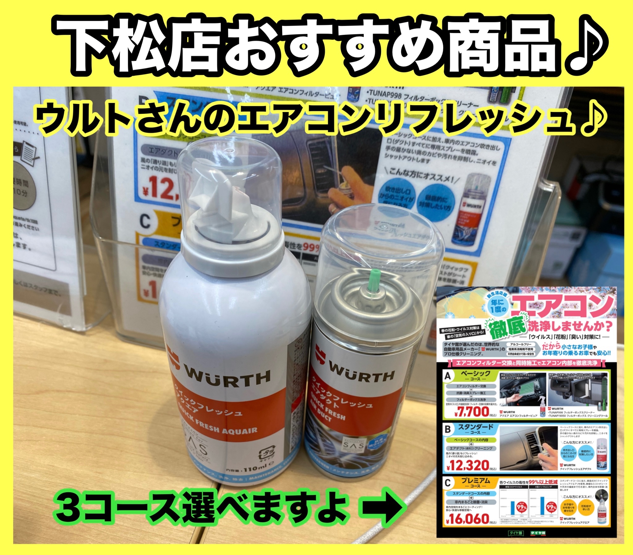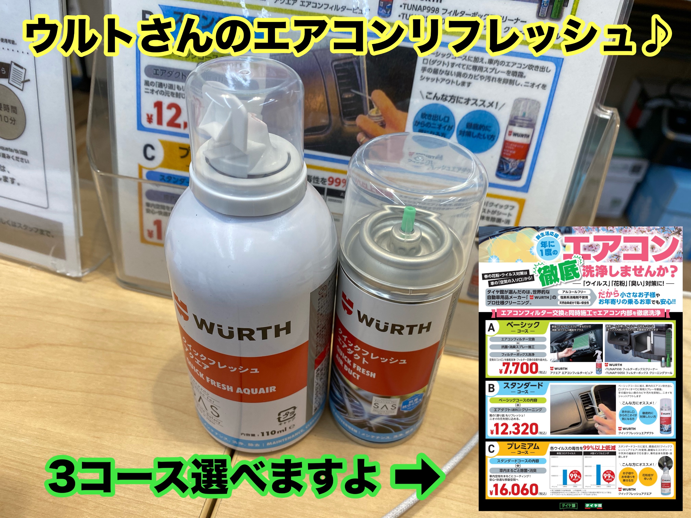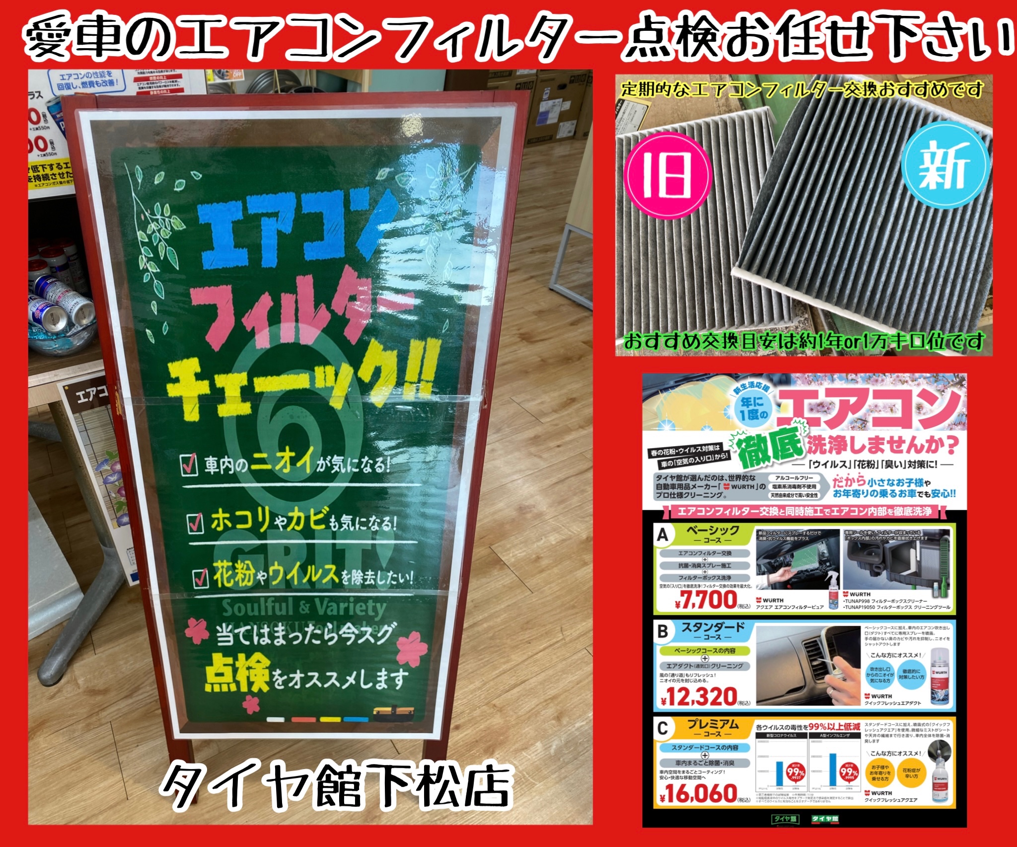 タイヤ館下松店ではエアコンフィルター交換と一緒にエアコンリフレッシュおすすめですよ。