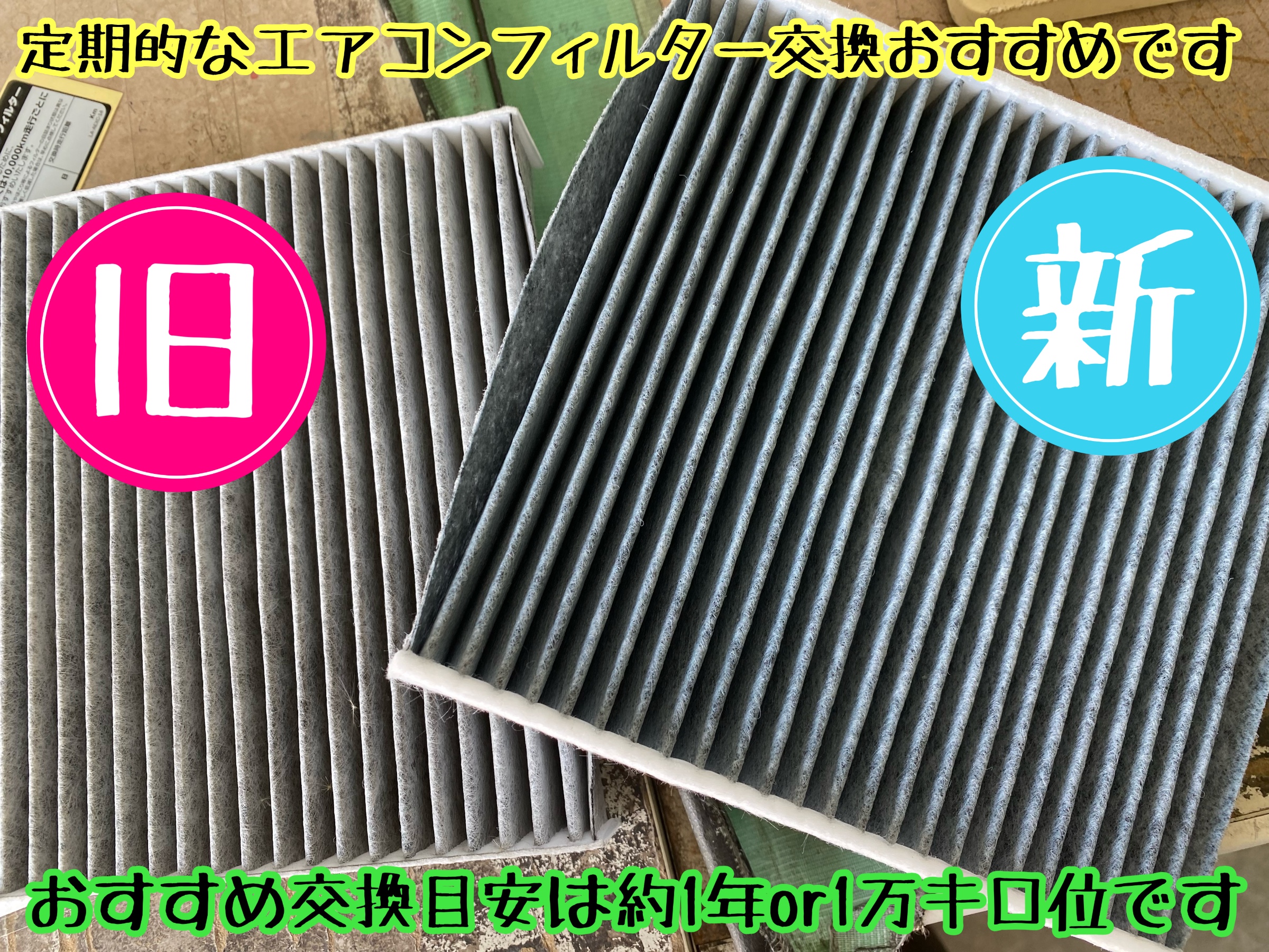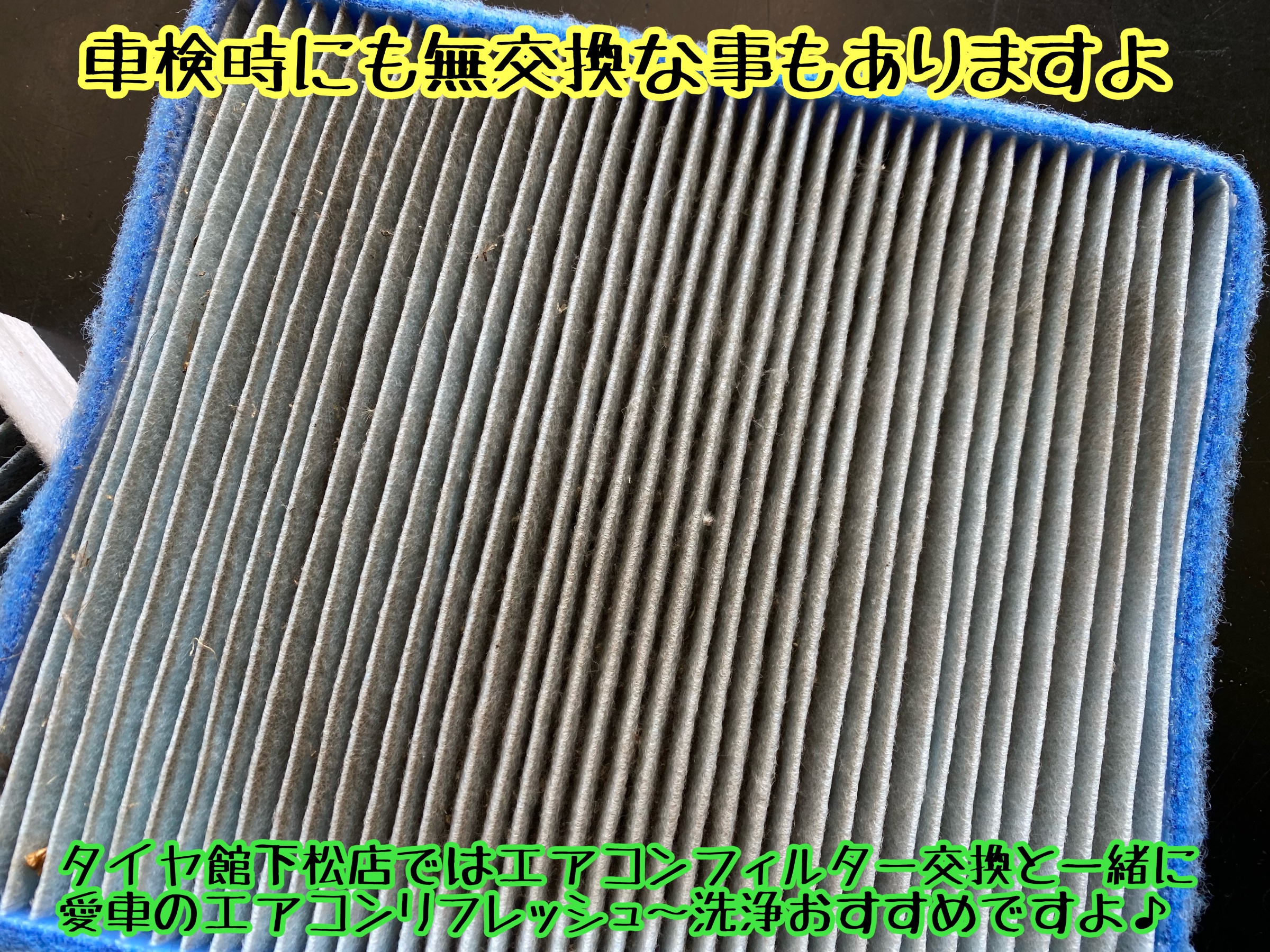 皆さまは愛車のエアコンフィルター点検されていますか?タイヤ館下松店ではエアコンフィルター交換と一緒にエアコンリフレッシュおすすめですよ。