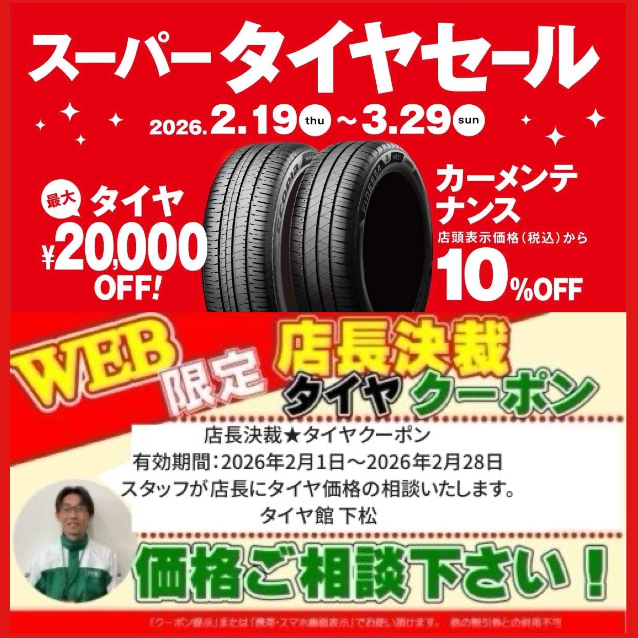 ※タイヤクーポンは、店頭表示価格(税込)からの割引となります。