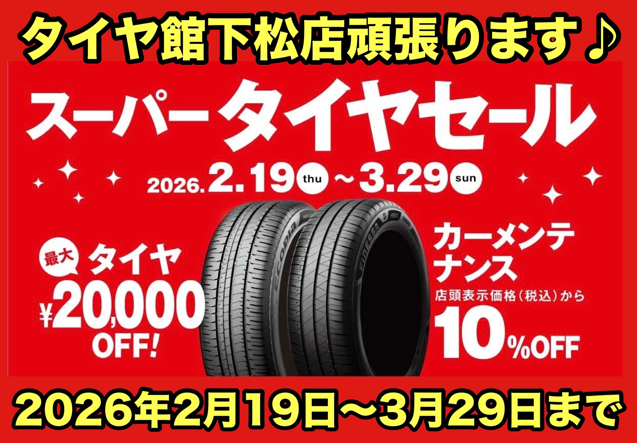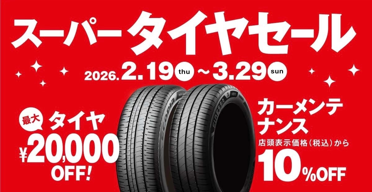 本日19日からブリヂストンタイヤをお得に買える!スーパータイヤセールを開催します。