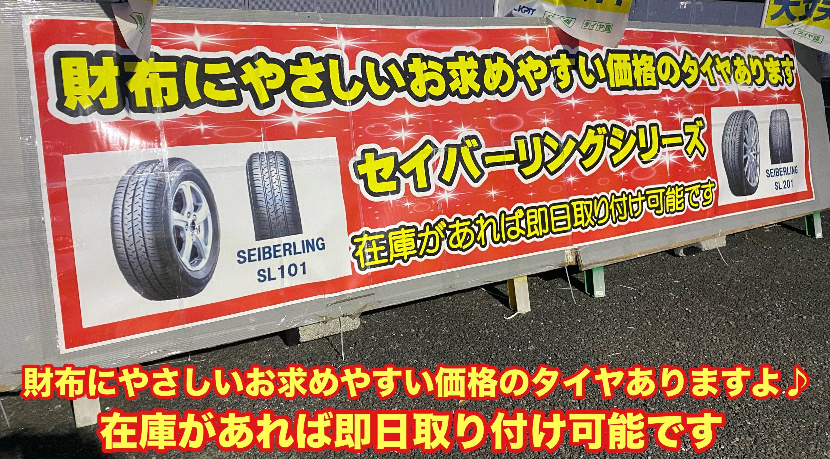 財布にやさしいお求めやすい価格のタイヤありますよ。在庫があれば即日取付も可能です。