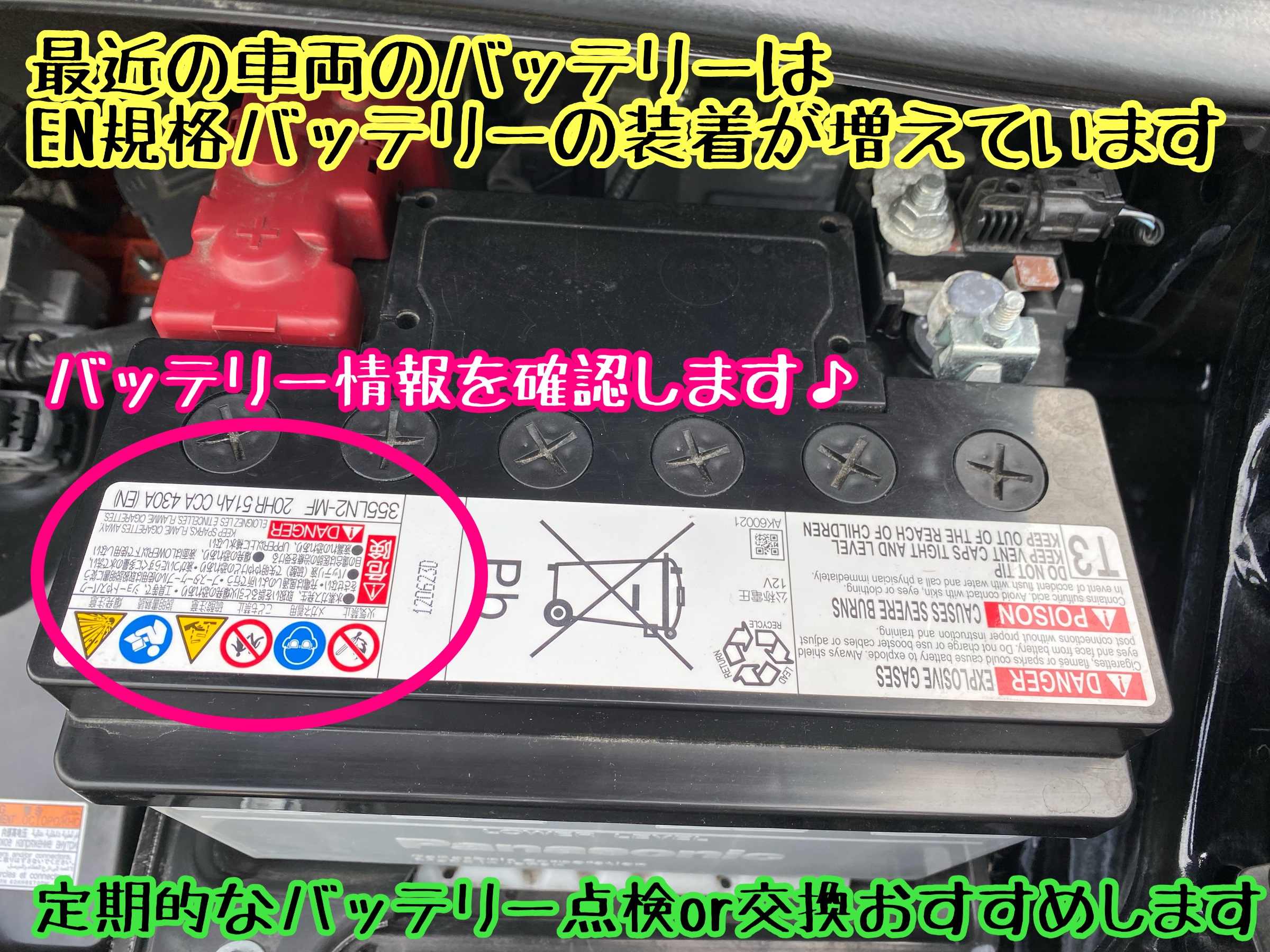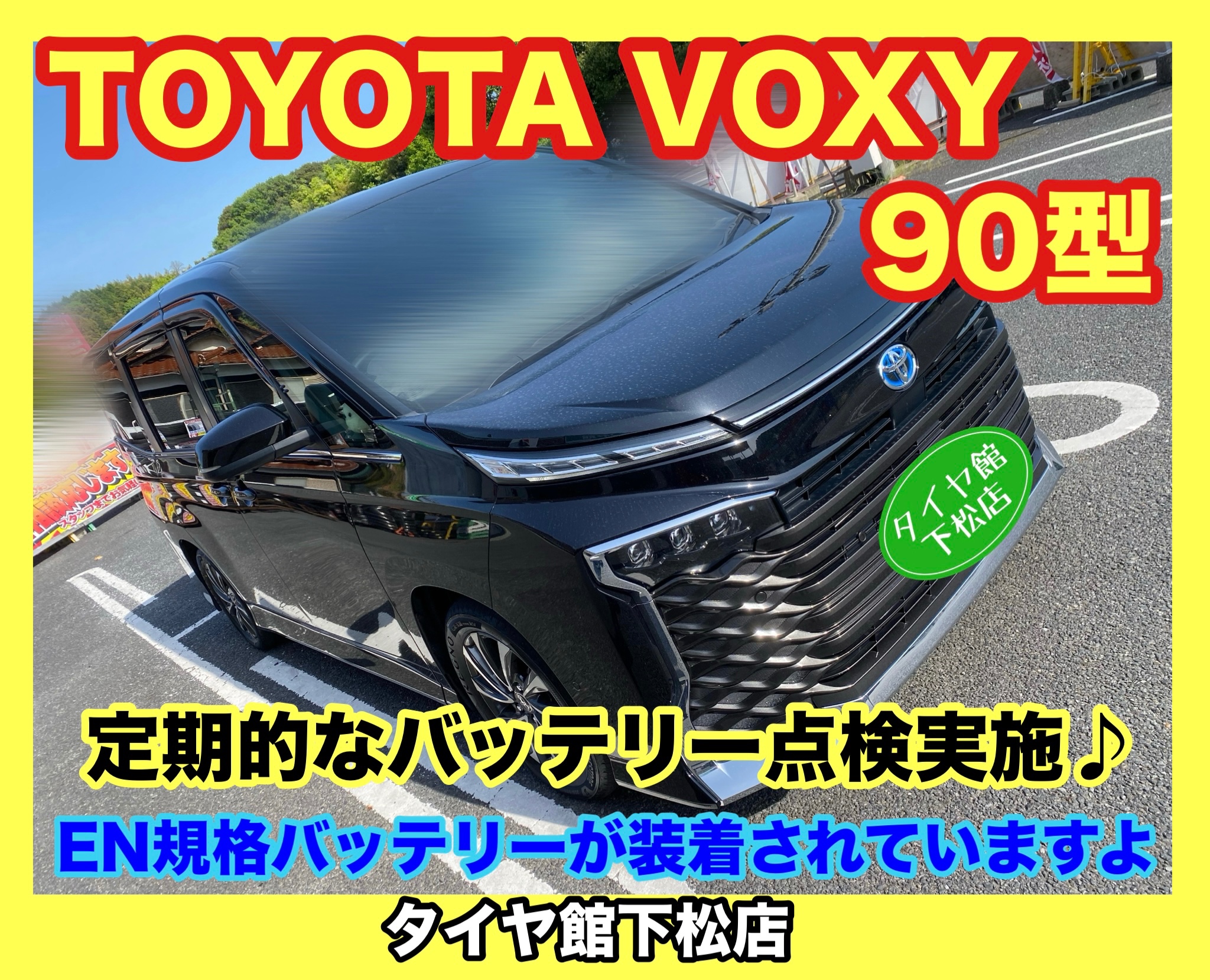 トヨタ VOXY 90型 定期的なバッテリー点検。最近増えてるEN規格バッテリーが装着されています。