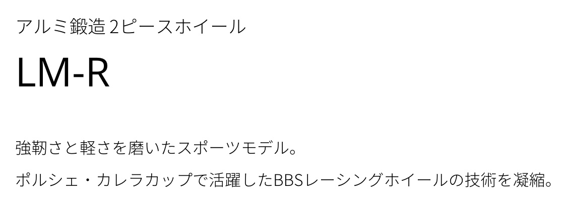 本日のアルミホイール紹介はBBSさんのアルミ鍛造 2ピースホイール LM-R