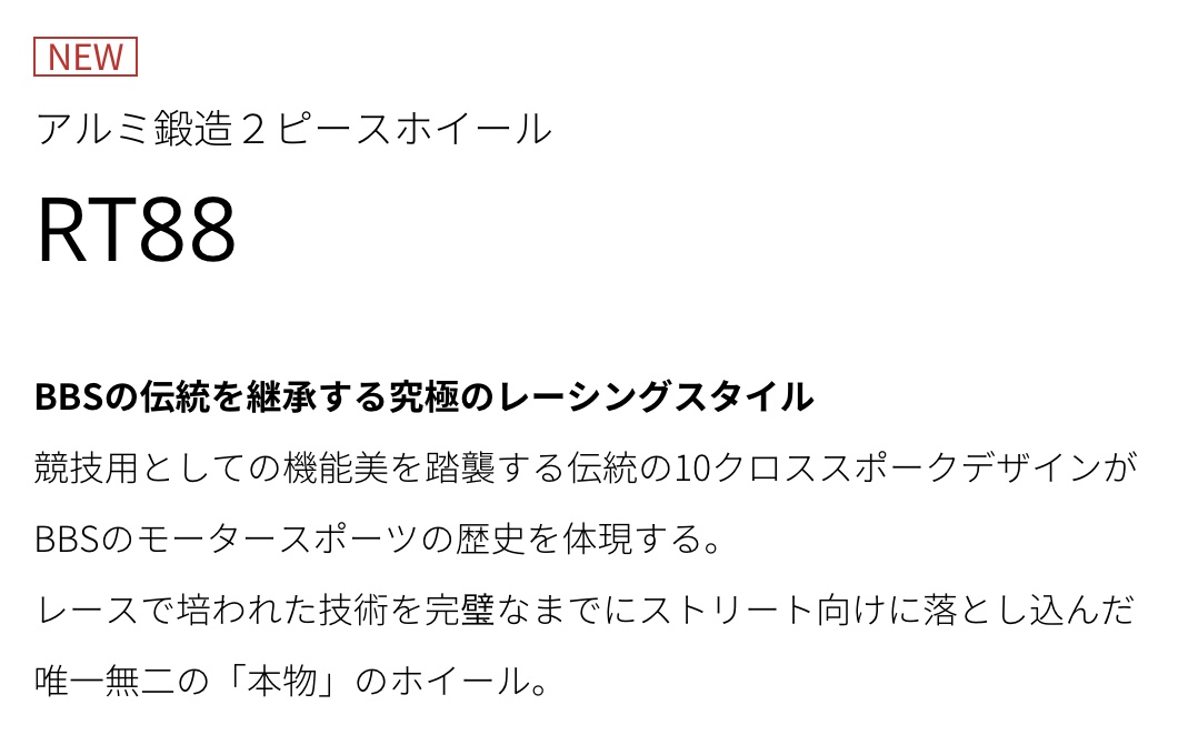 アルミホイール紹介 BBSさんのRT88 アルミ鍛造2ピースホイール