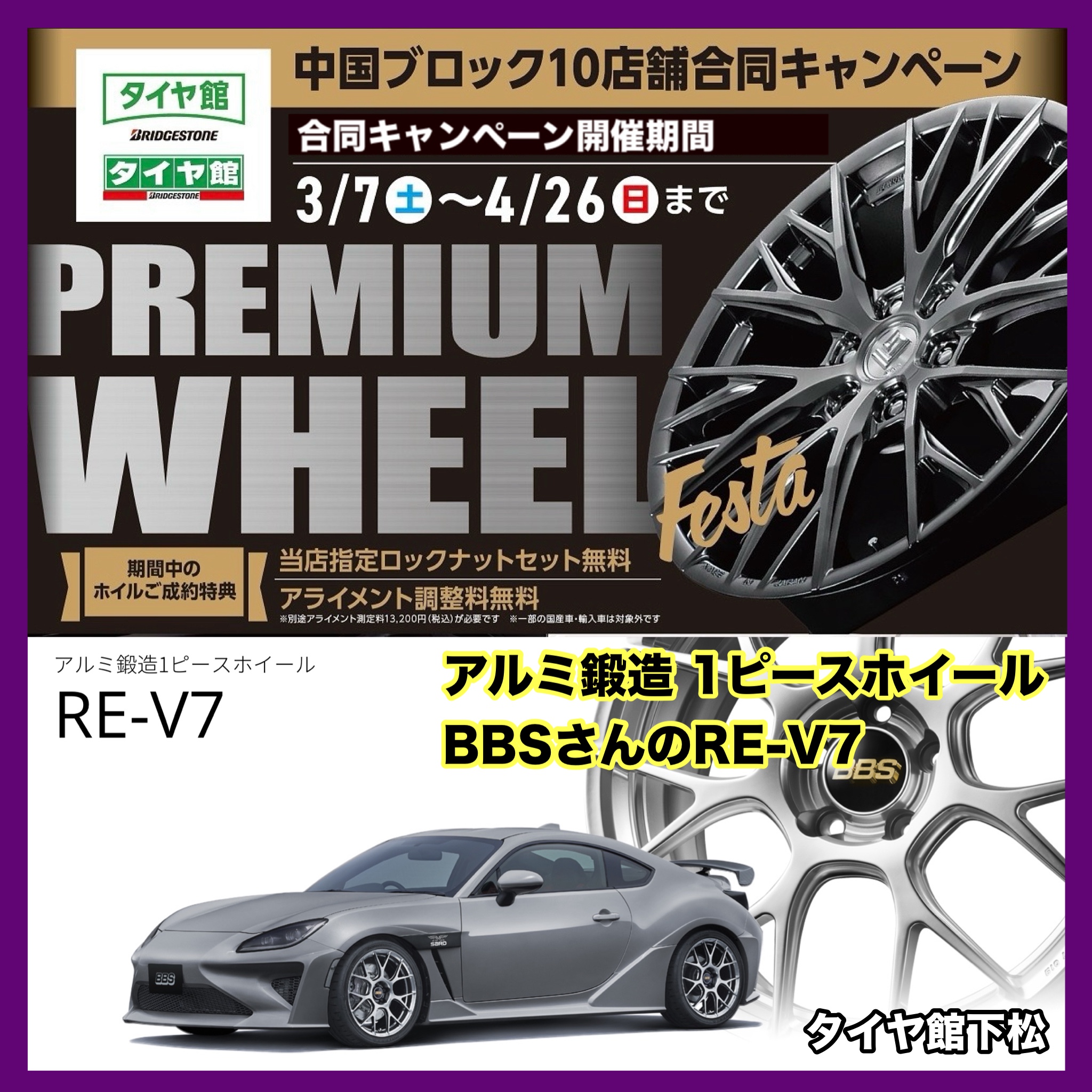 マックスバリュさん ナフコさん ウォンツさん 山口銀行さん はちやまさん …などの近くに店舗(タイヤ館下松)はありますので…愛車の空気圧点検など気軽にお声掛けくださいね。 アルミホイール BBS RAYS WORK TWS