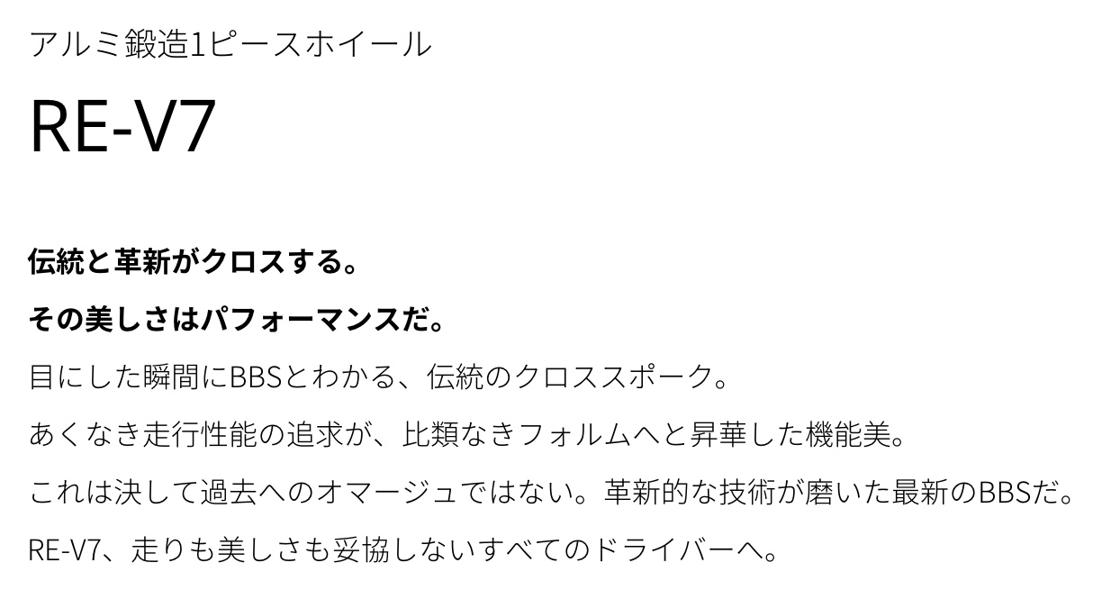 本日のアルミホイール紹介はBBSさんのアルミ鍛造1ピースホイール RE-V7