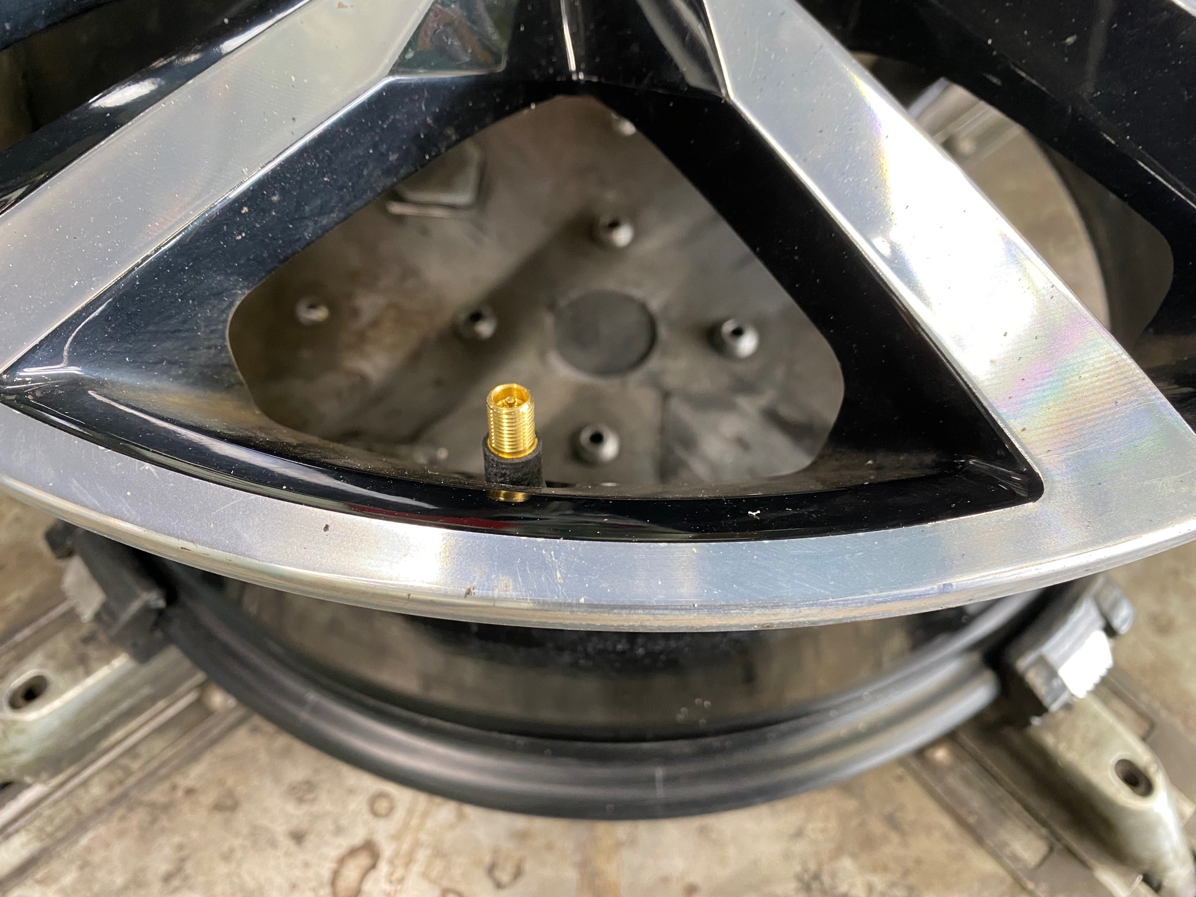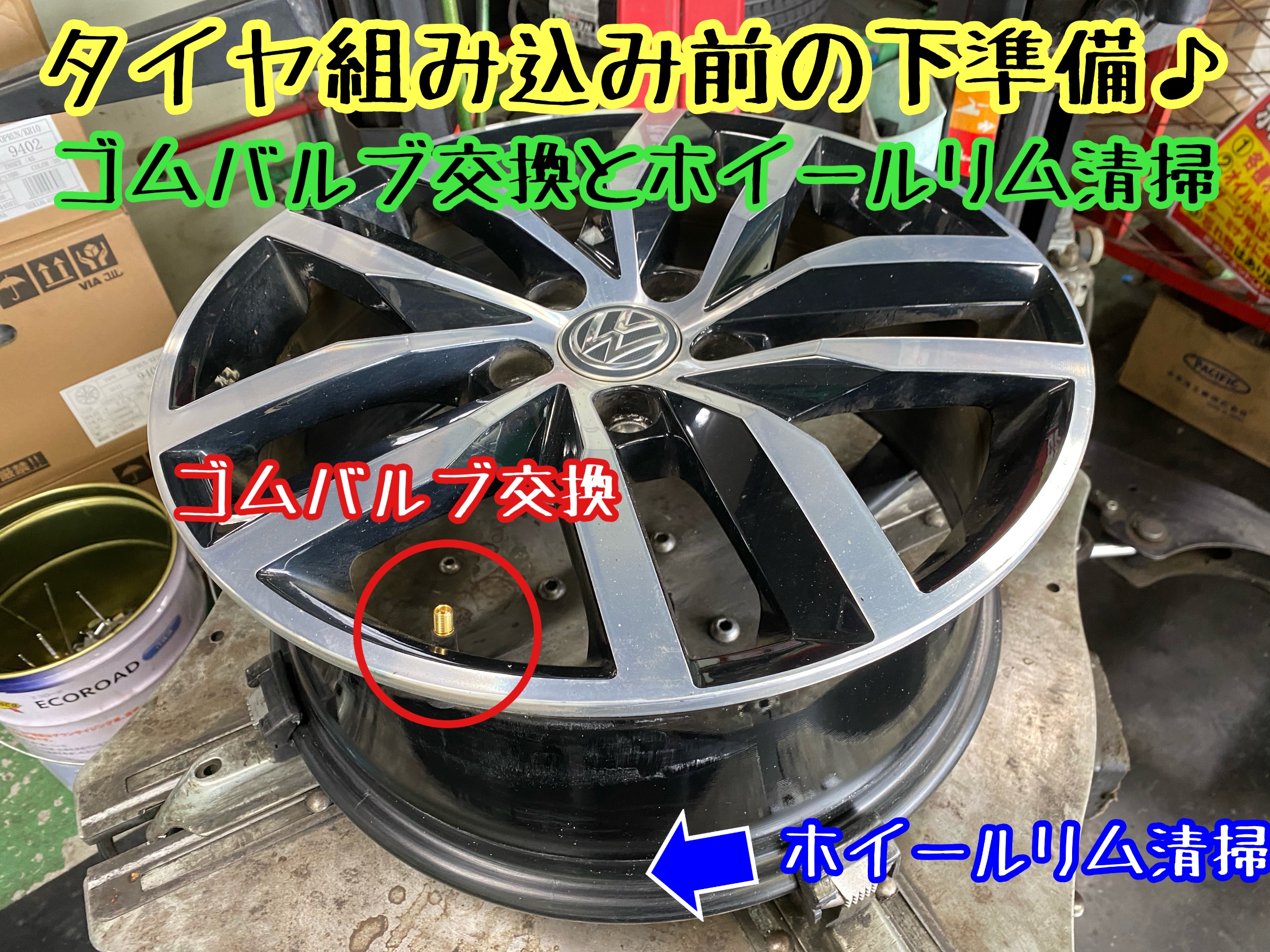 ゴムバルブ交換とホイールリム清掃。