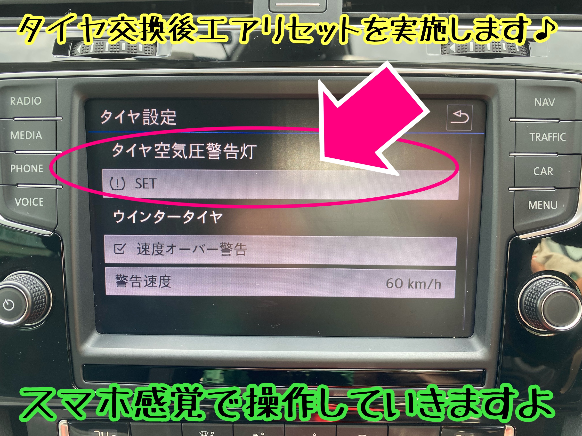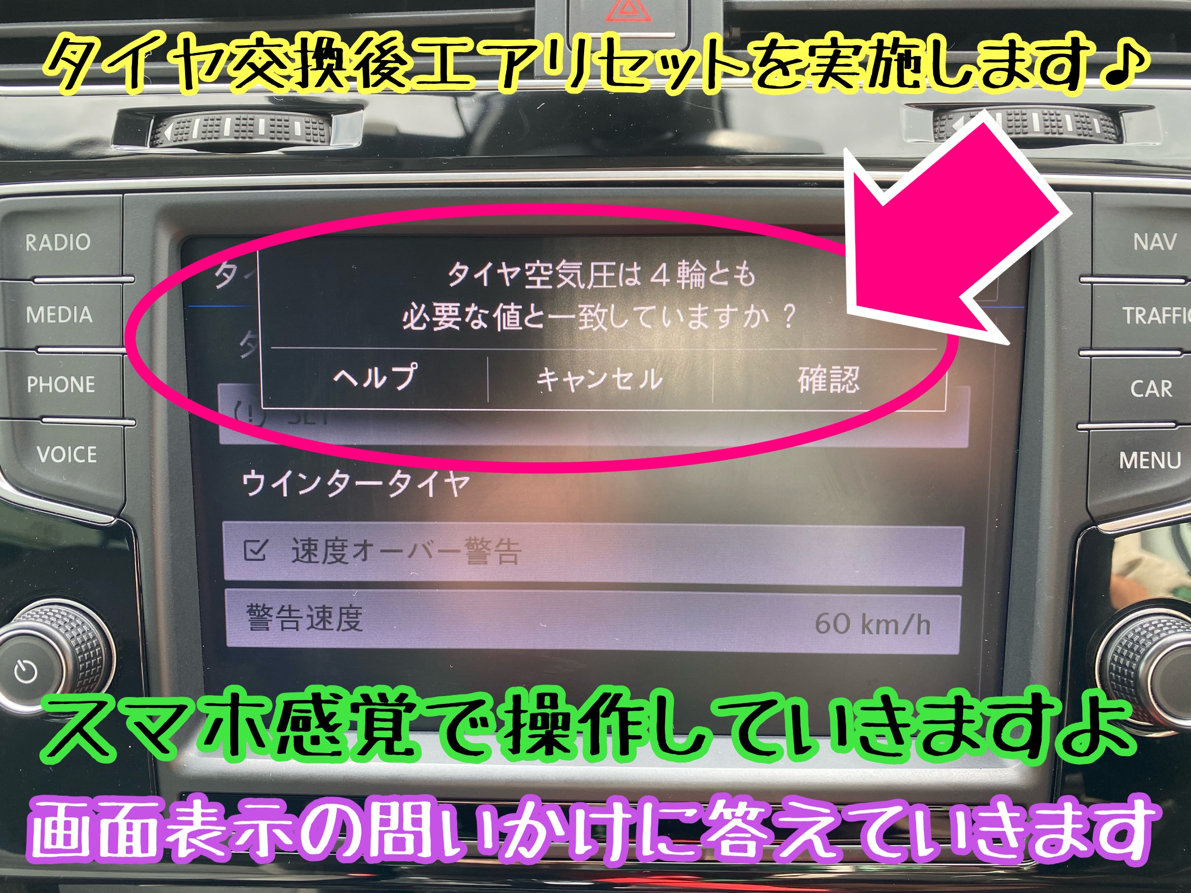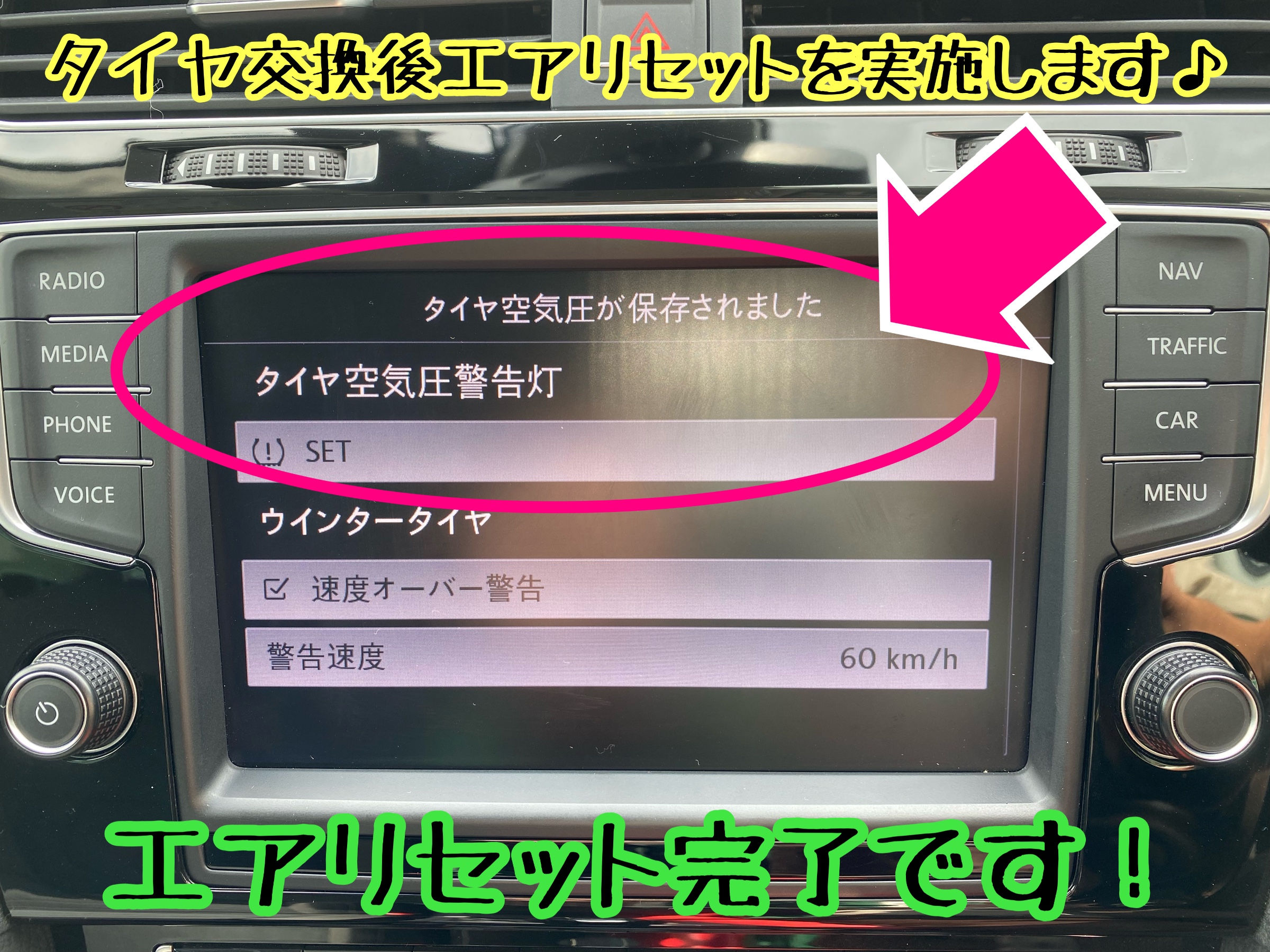 タイヤ交換後のエアリセット 空気圧リセットも実施します。
