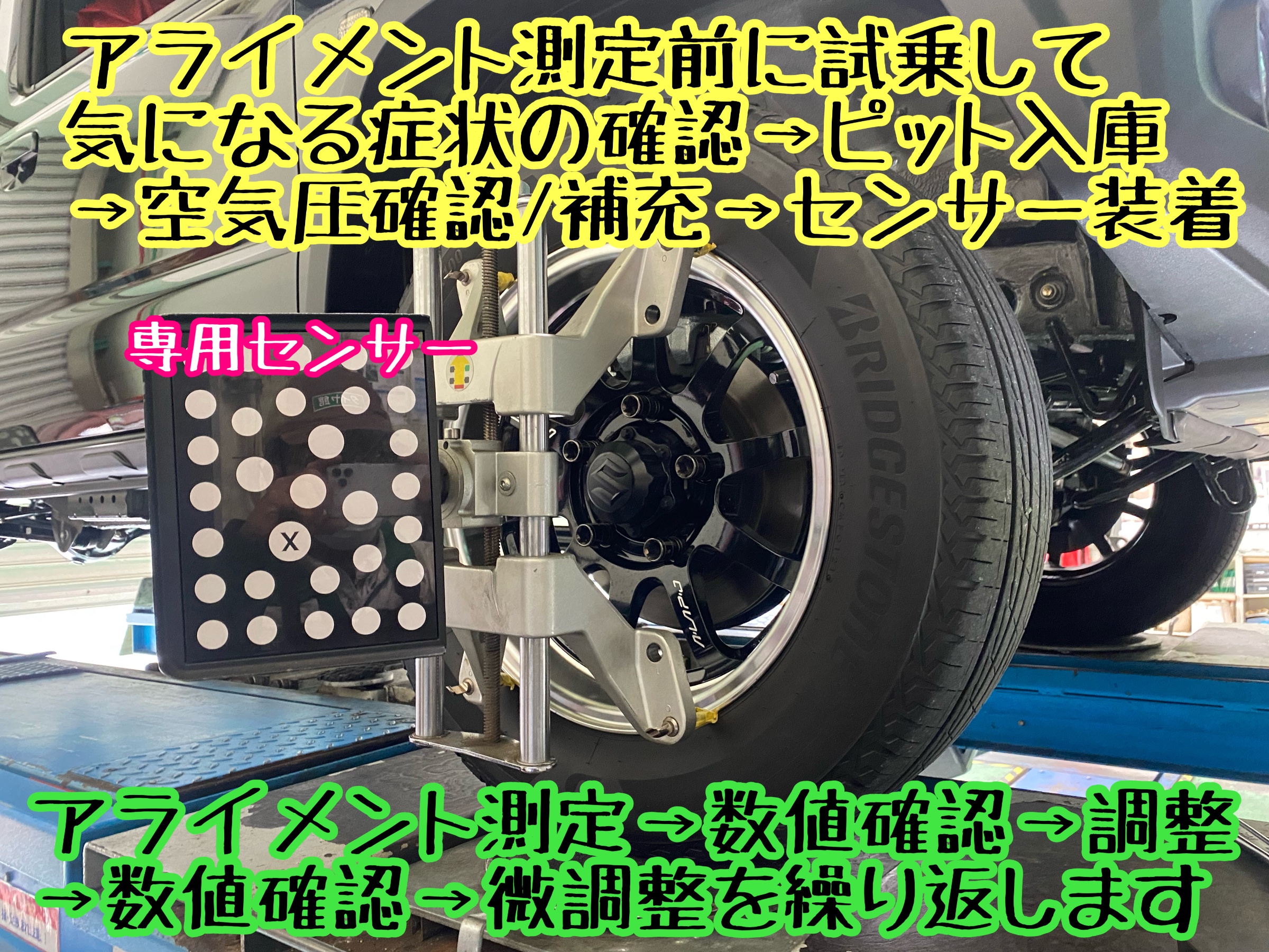 アライメント測定→数値確認→調整