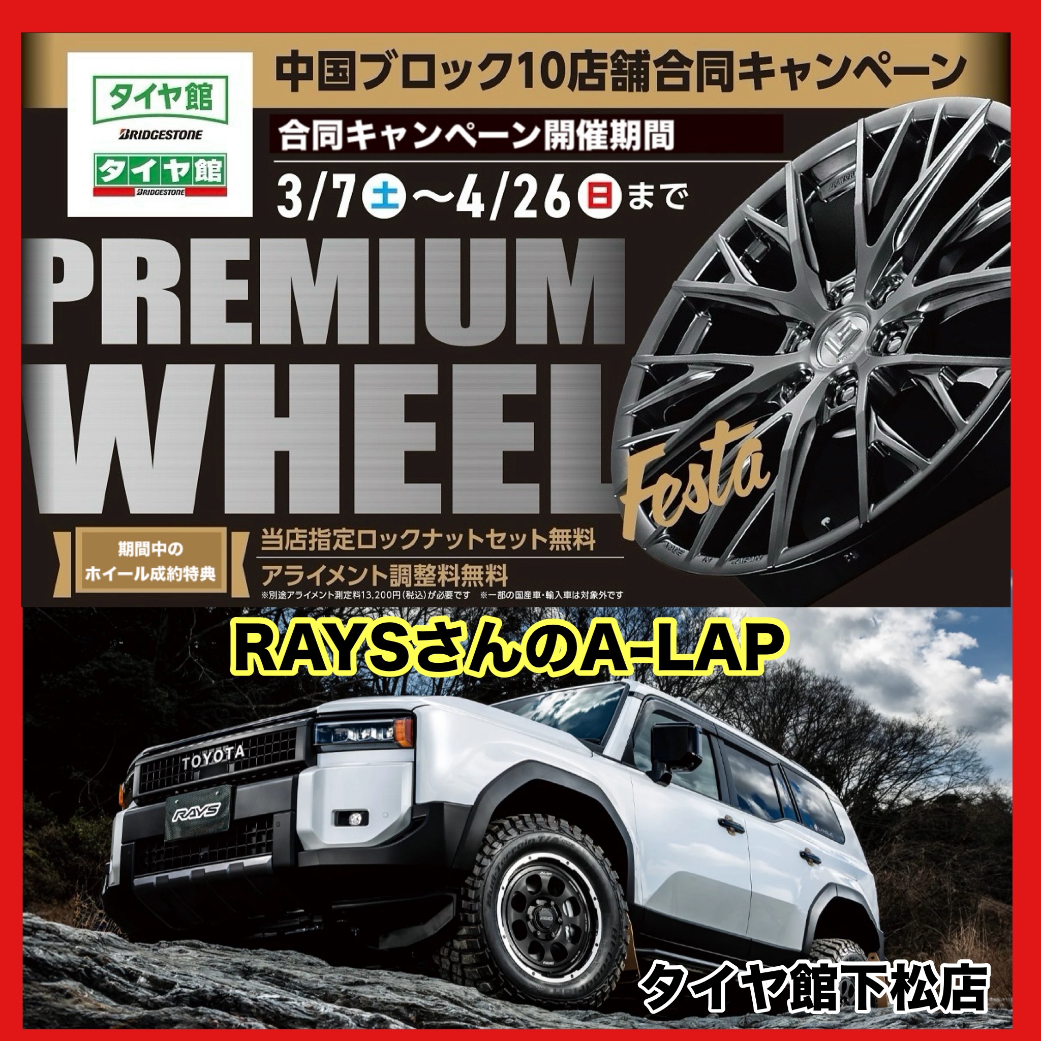 中国ブロックのタイヤ館10店舗で合同アルミホイールイベント開催中。