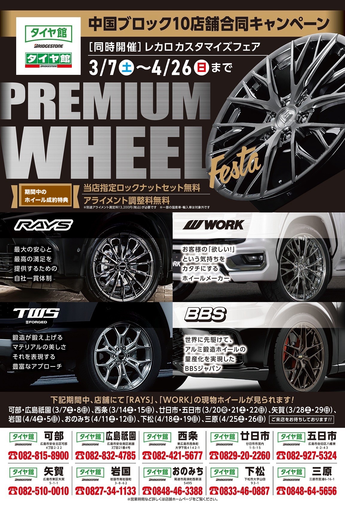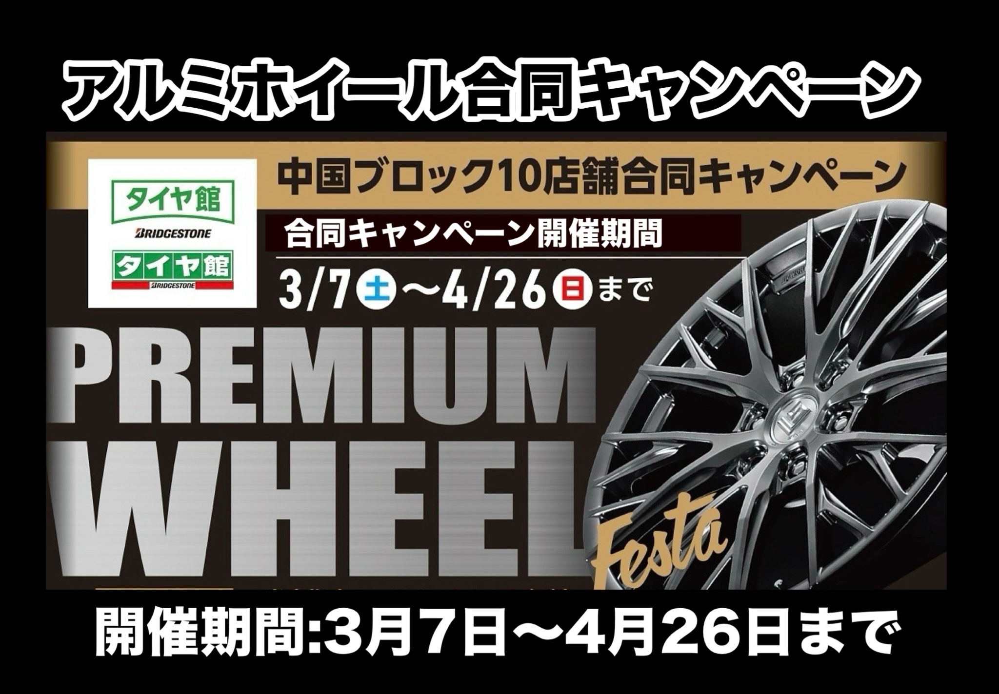 中国ブロックのタイヤ館10店舗で合同アルミホイールイベント開催中。