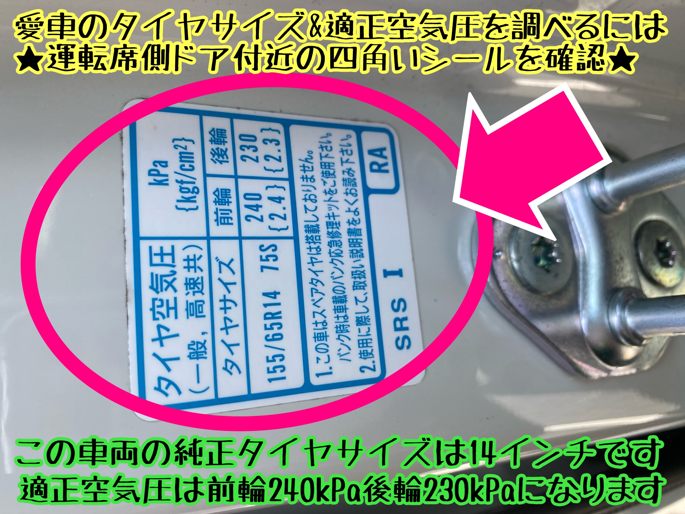 愛車のタイヤサイズ&適正空気圧を調べるには