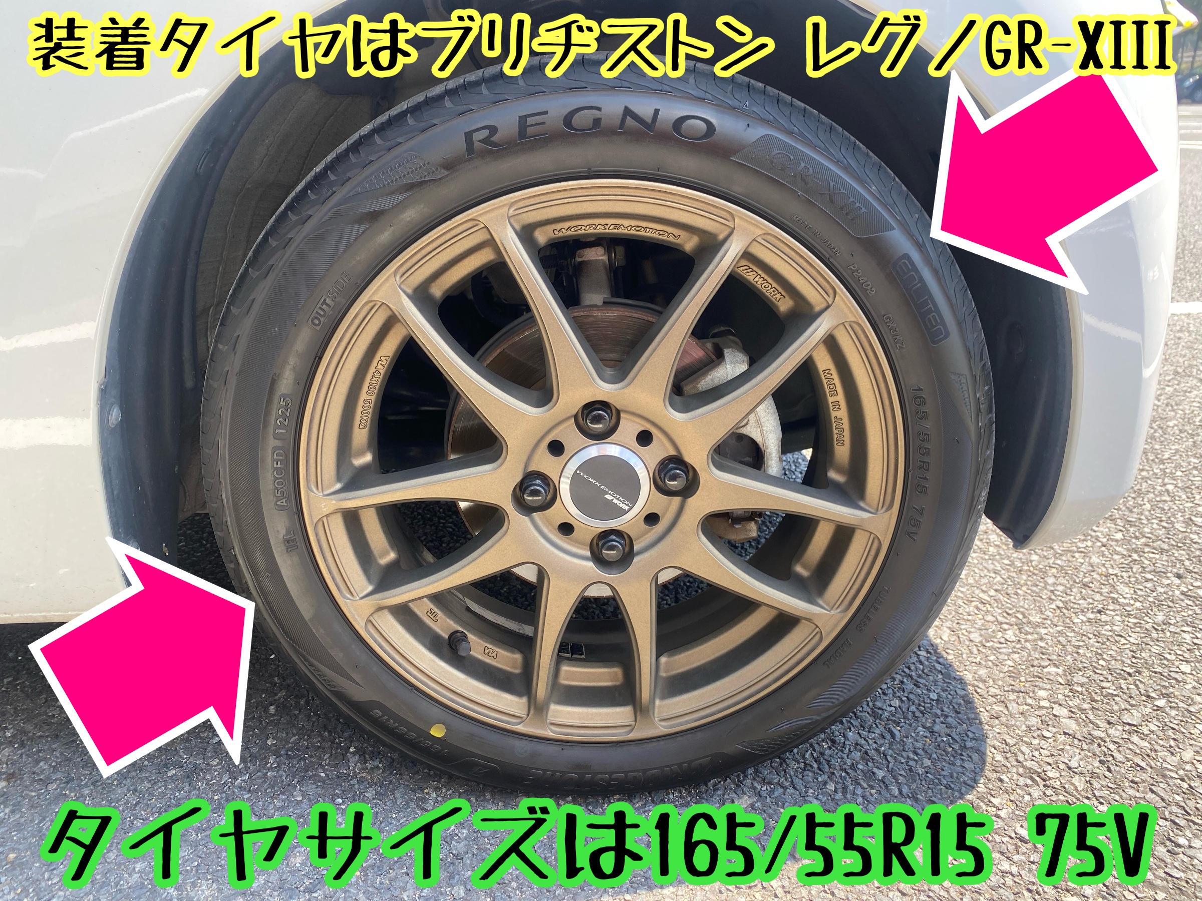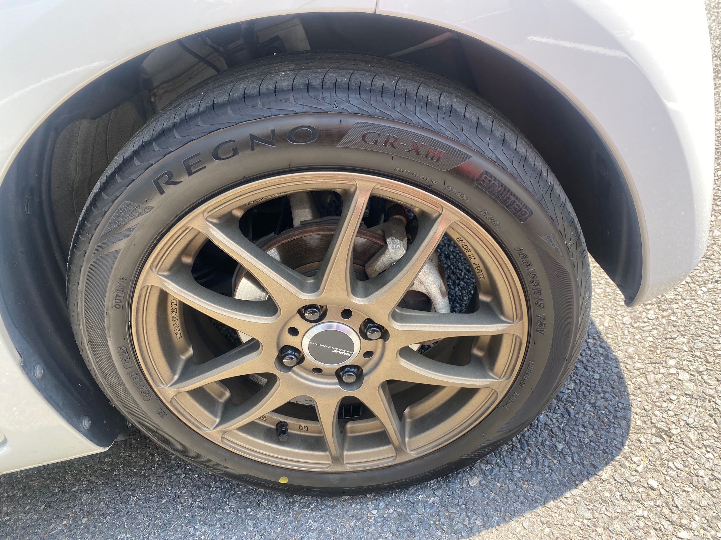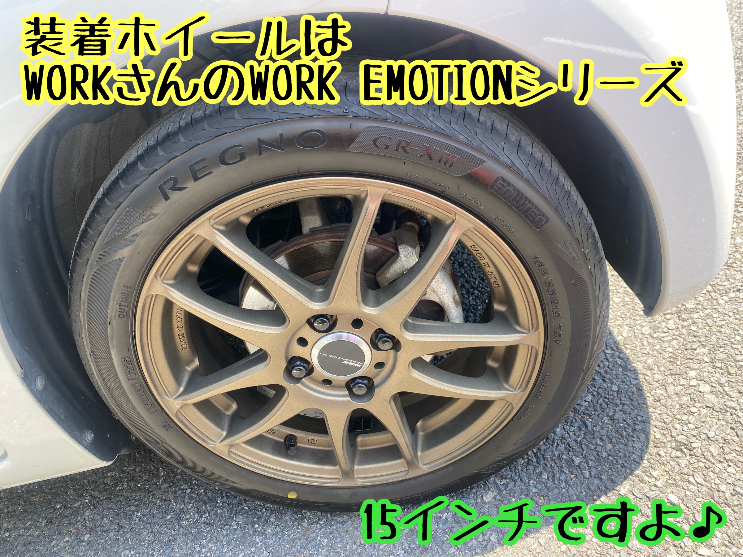 ホンダ N-BOX 履き替えのタイミングでタイヤ交換実施。装着タイヤホイールはブリヂストン レグノGR-XIII と WORKエモーションシリーズ。