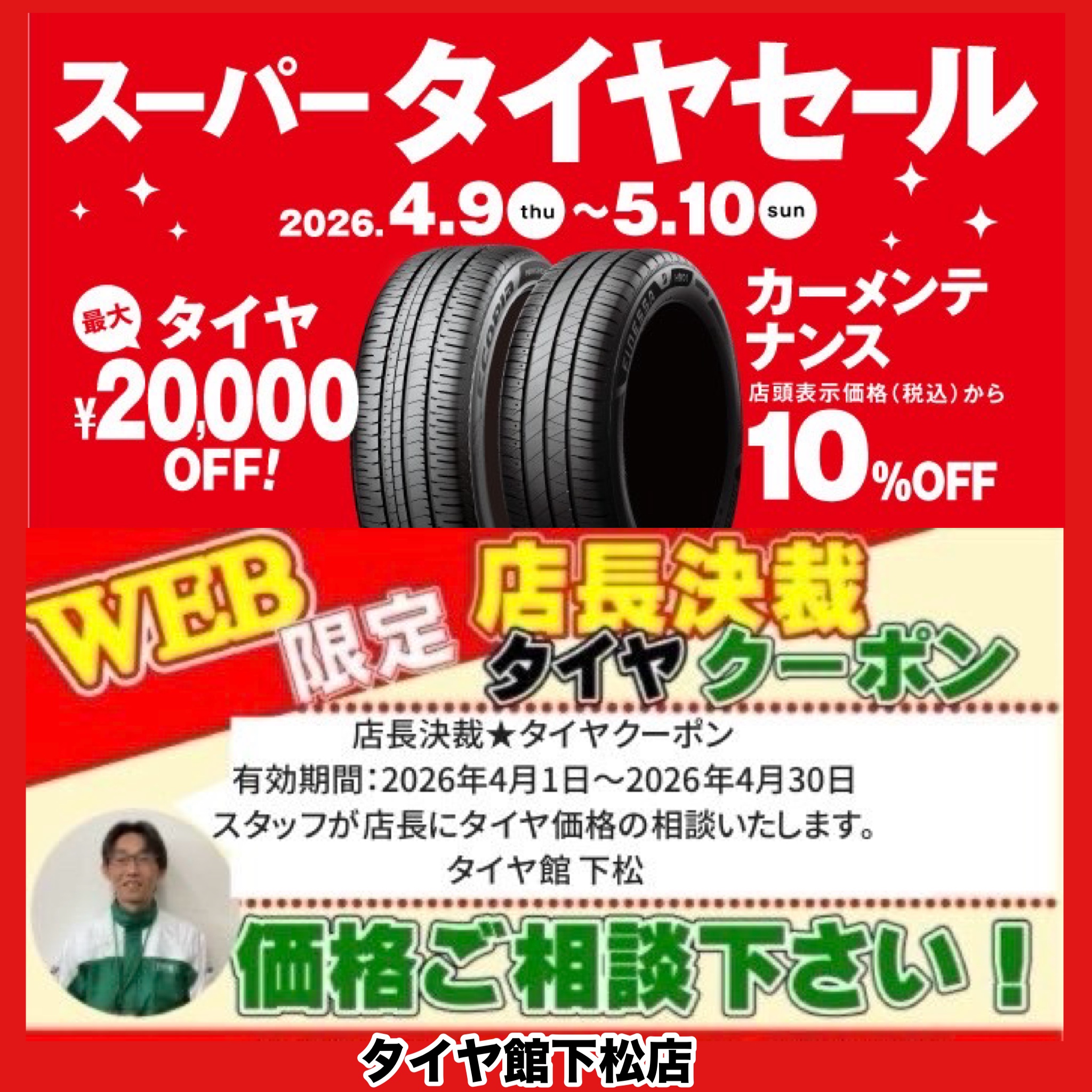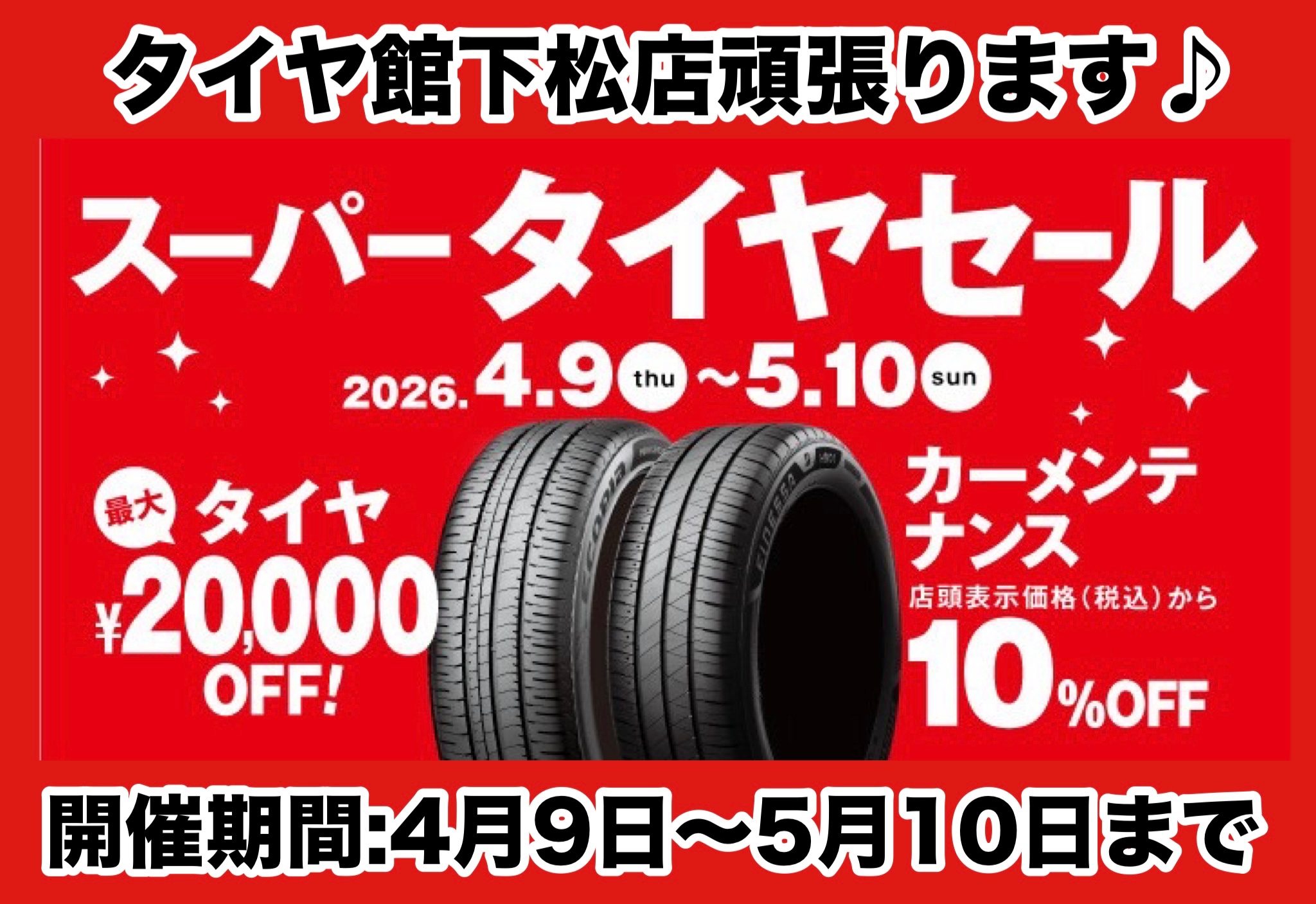 スーパータイヤセールを4月9日(木)から5月10日(日)中。