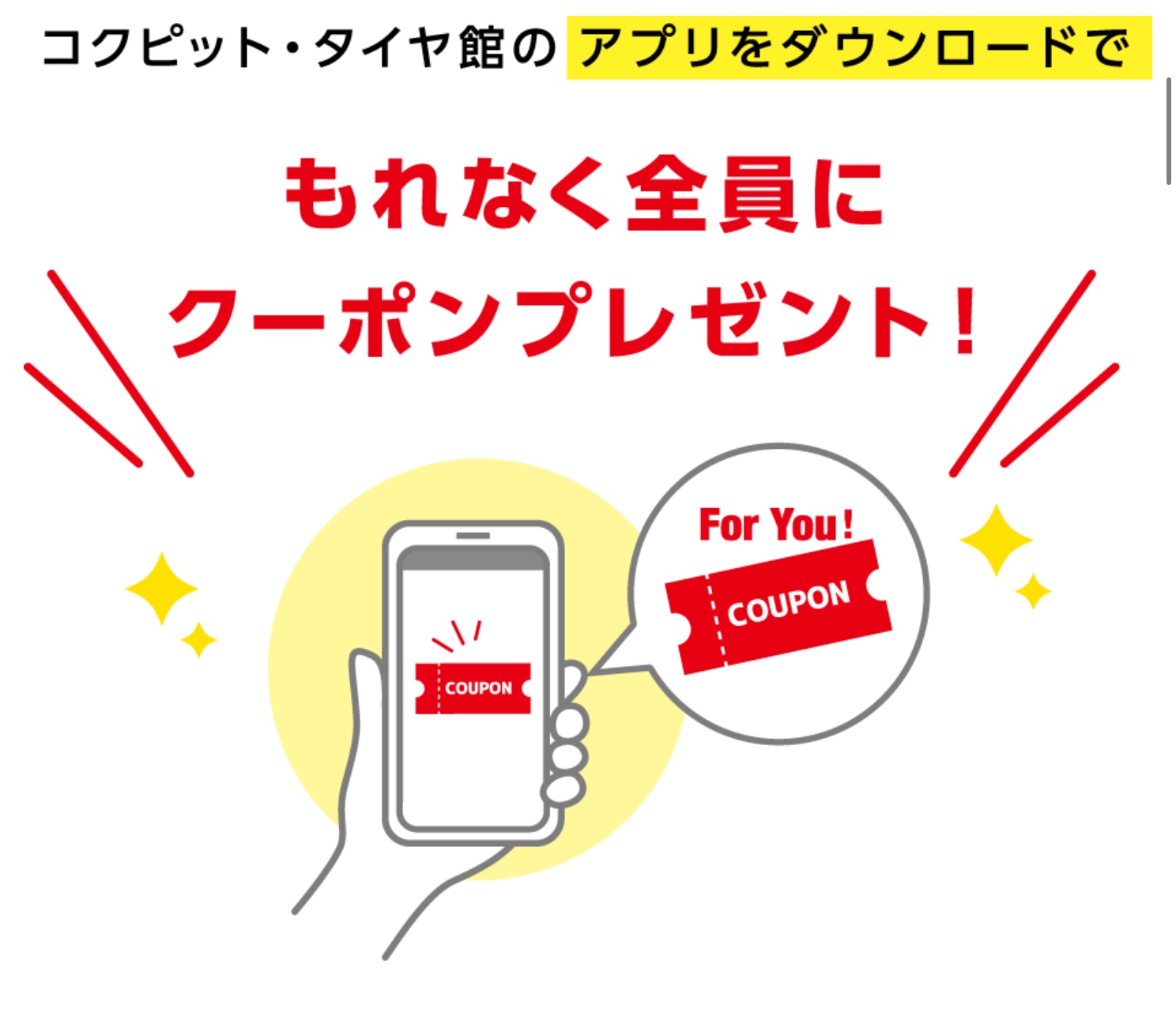 コクピット・タイヤ館のアプリをダウンロード頂いた方、もれなく全員に!!