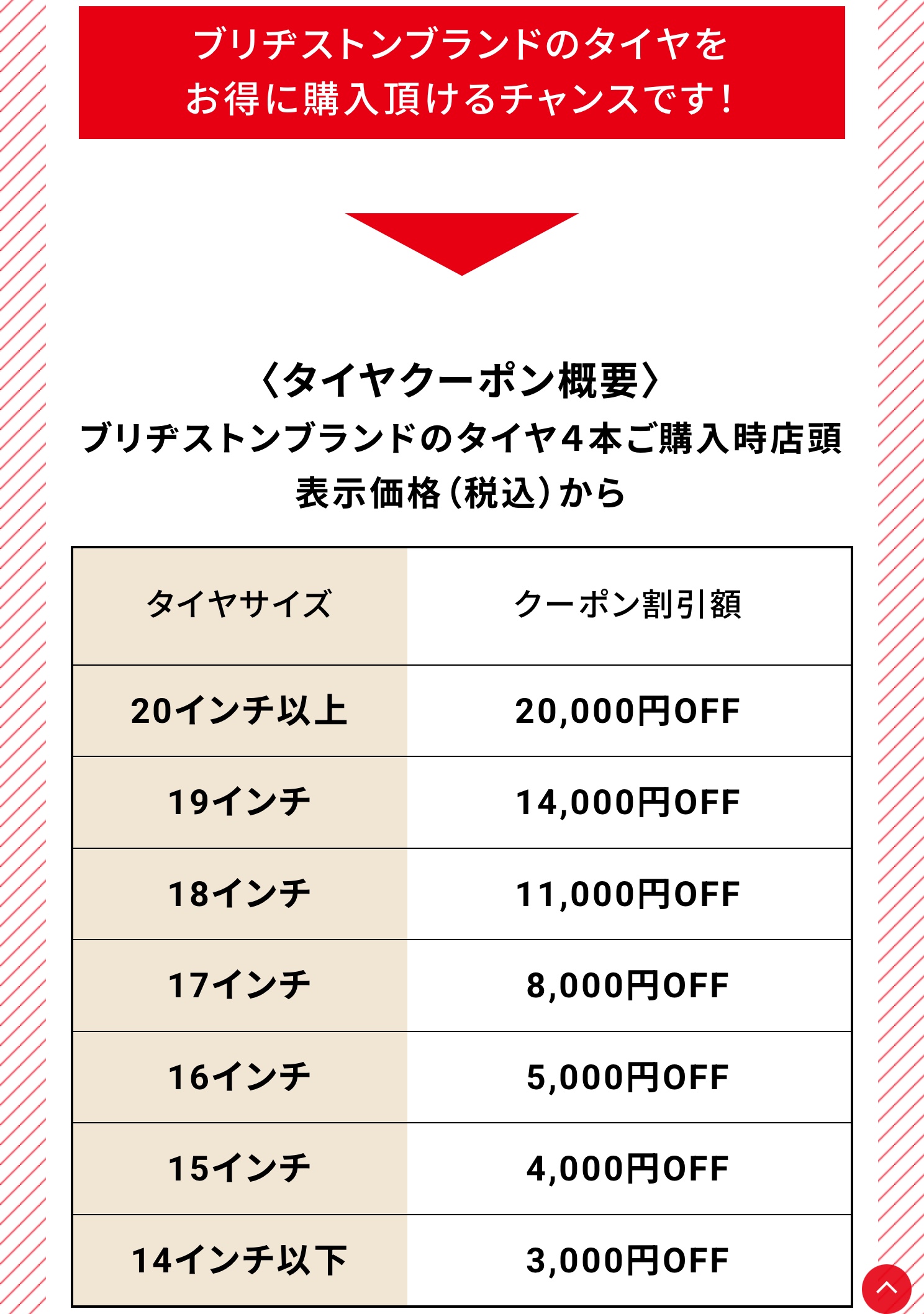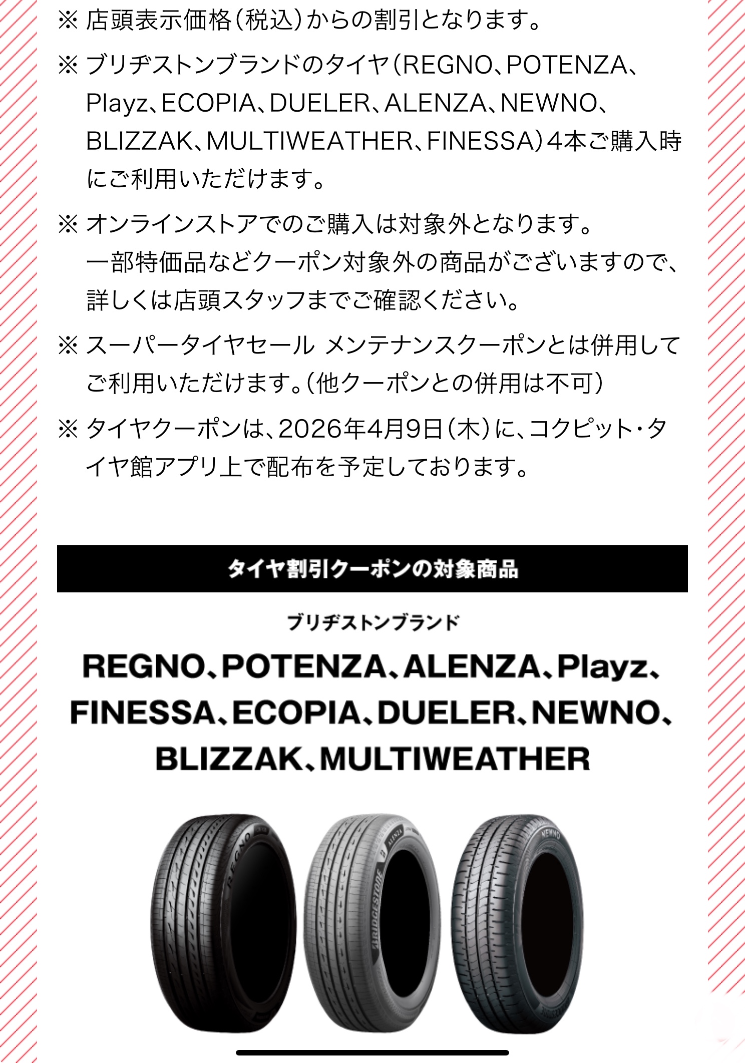 ※タイヤクーポンは、店頭表示価格(税込)からの割引となります。