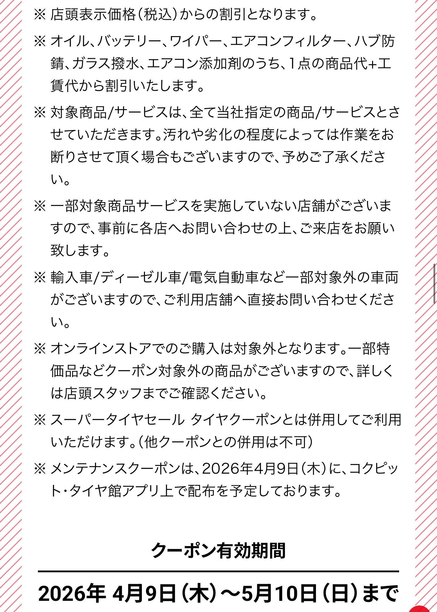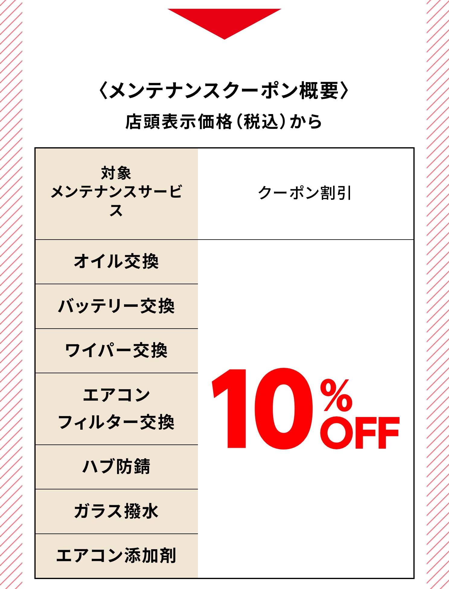 ※メンテナンスクーポンは、店頭表示価格(税込)からの割引となります。