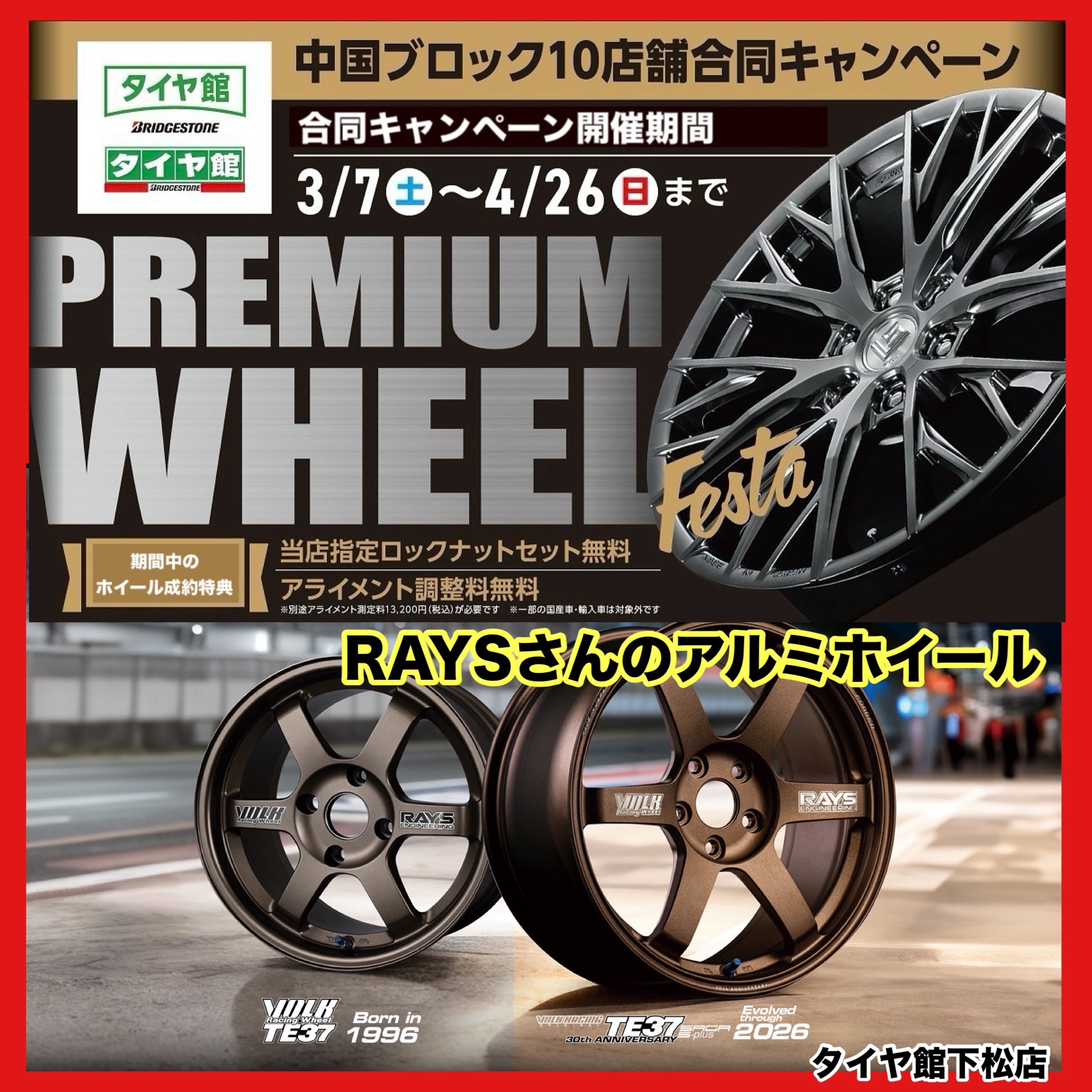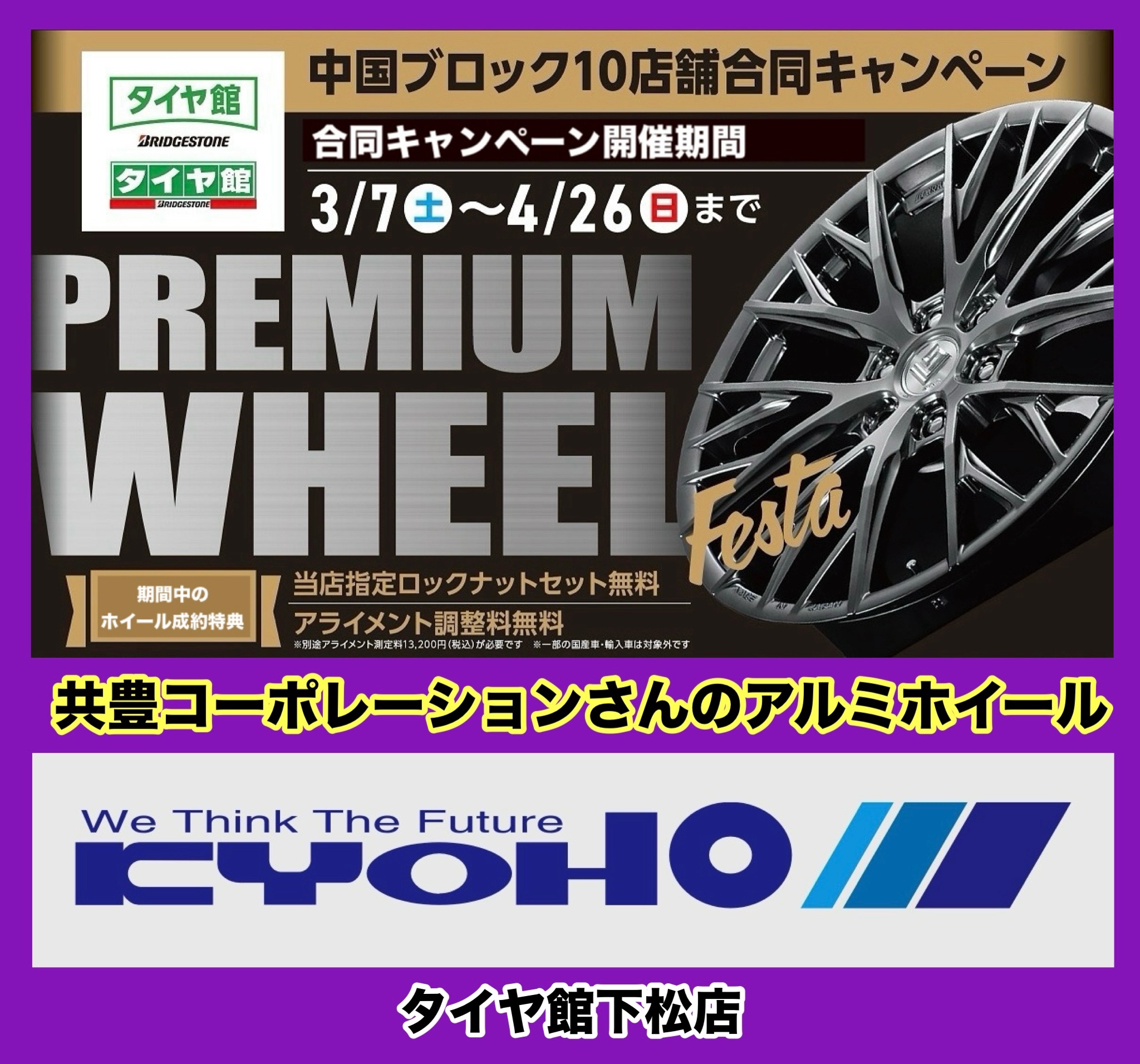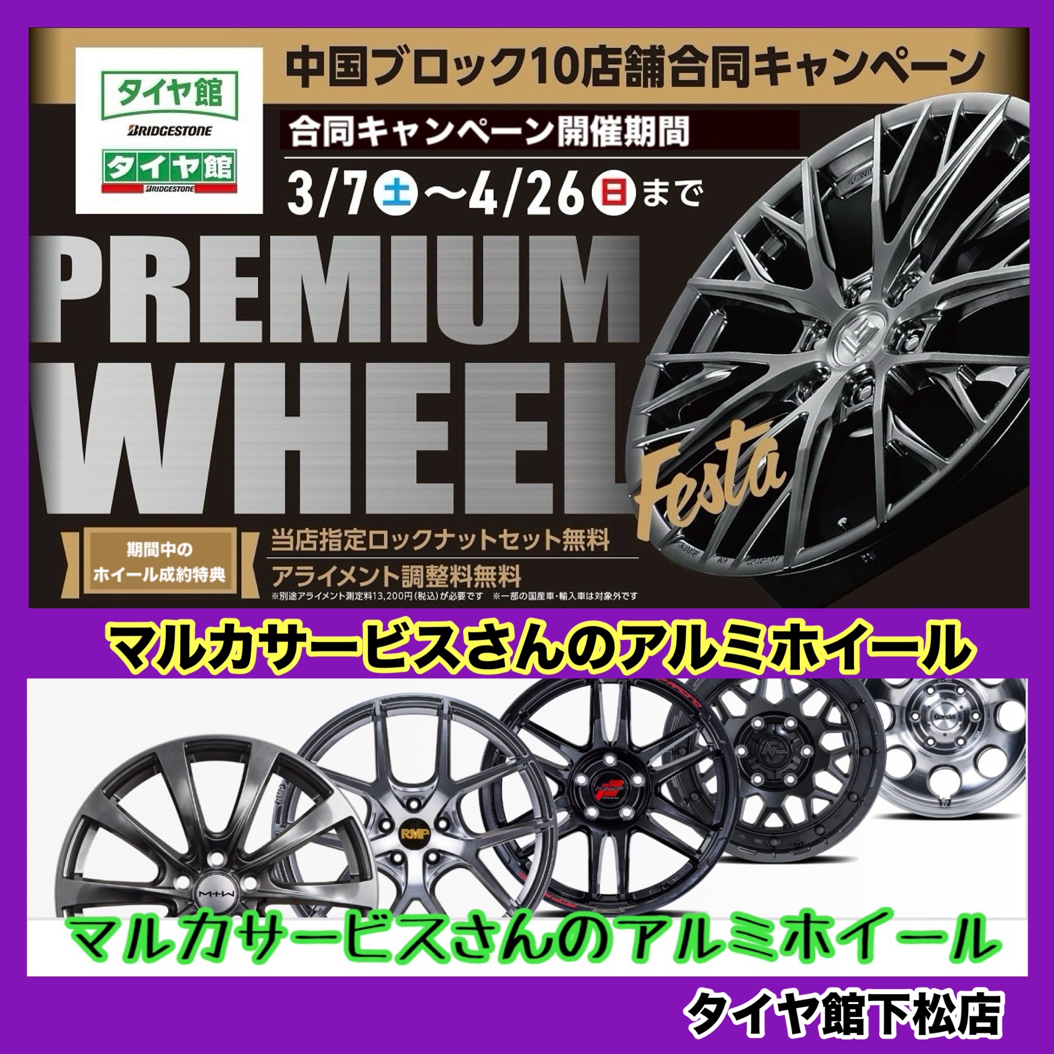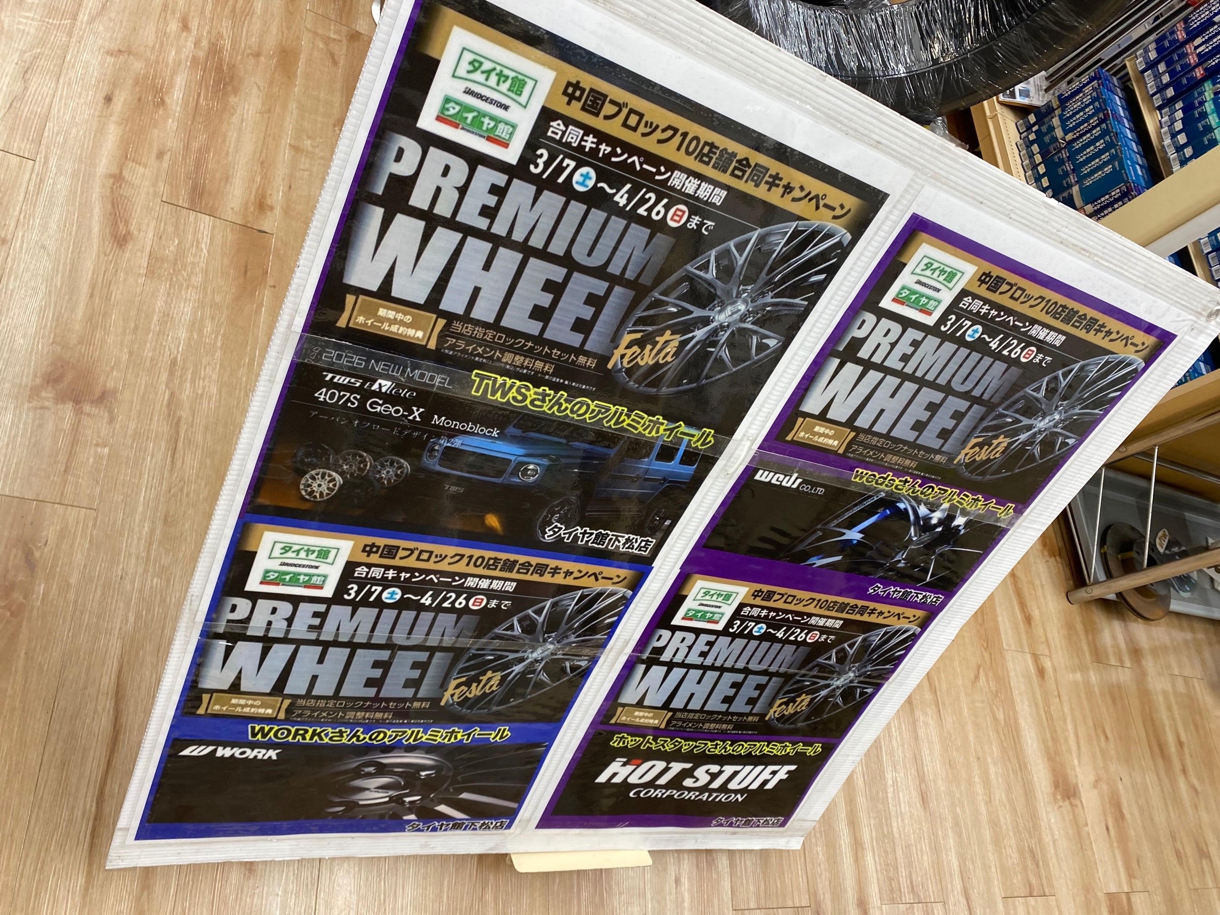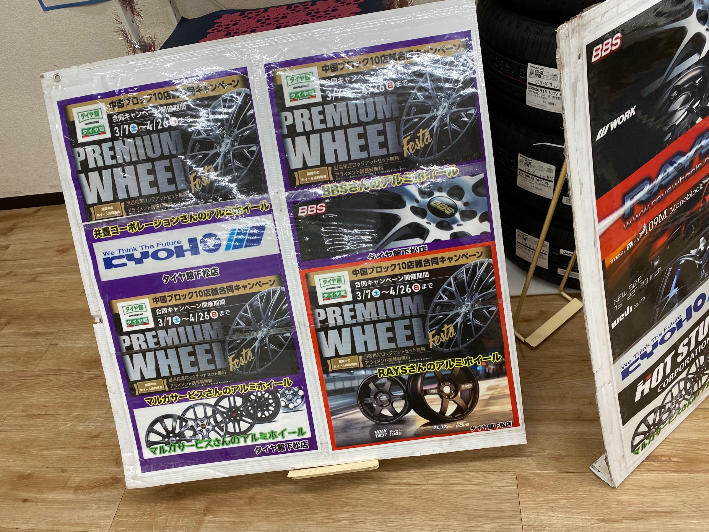 中国ブロックのタイヤ館10店舗で合同アルミホイールイベント開催中。