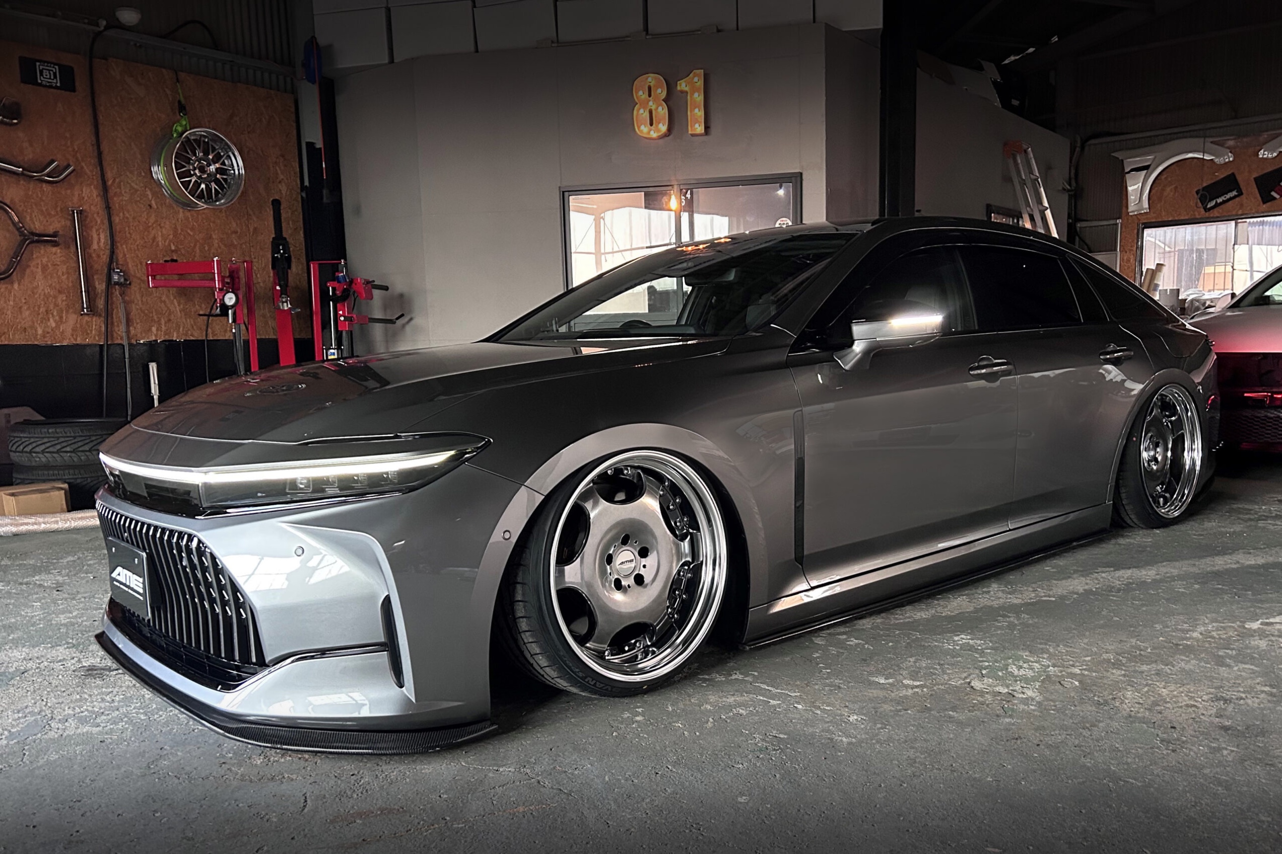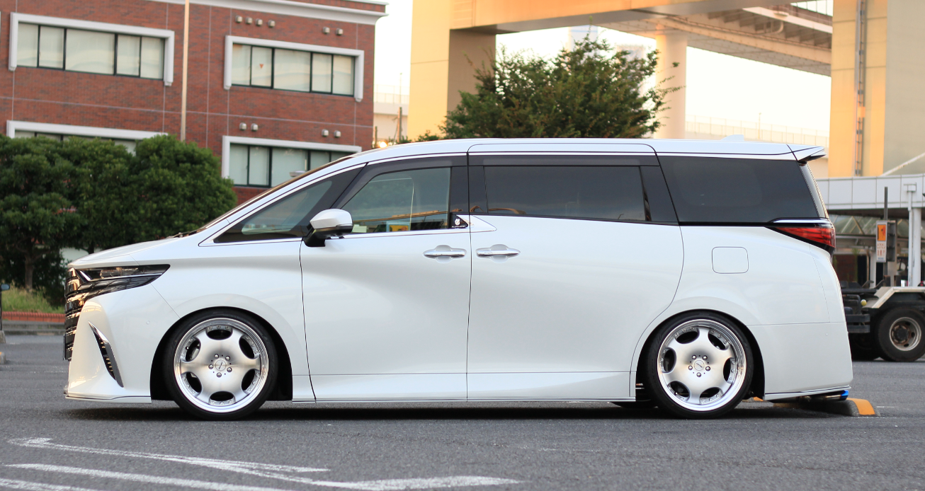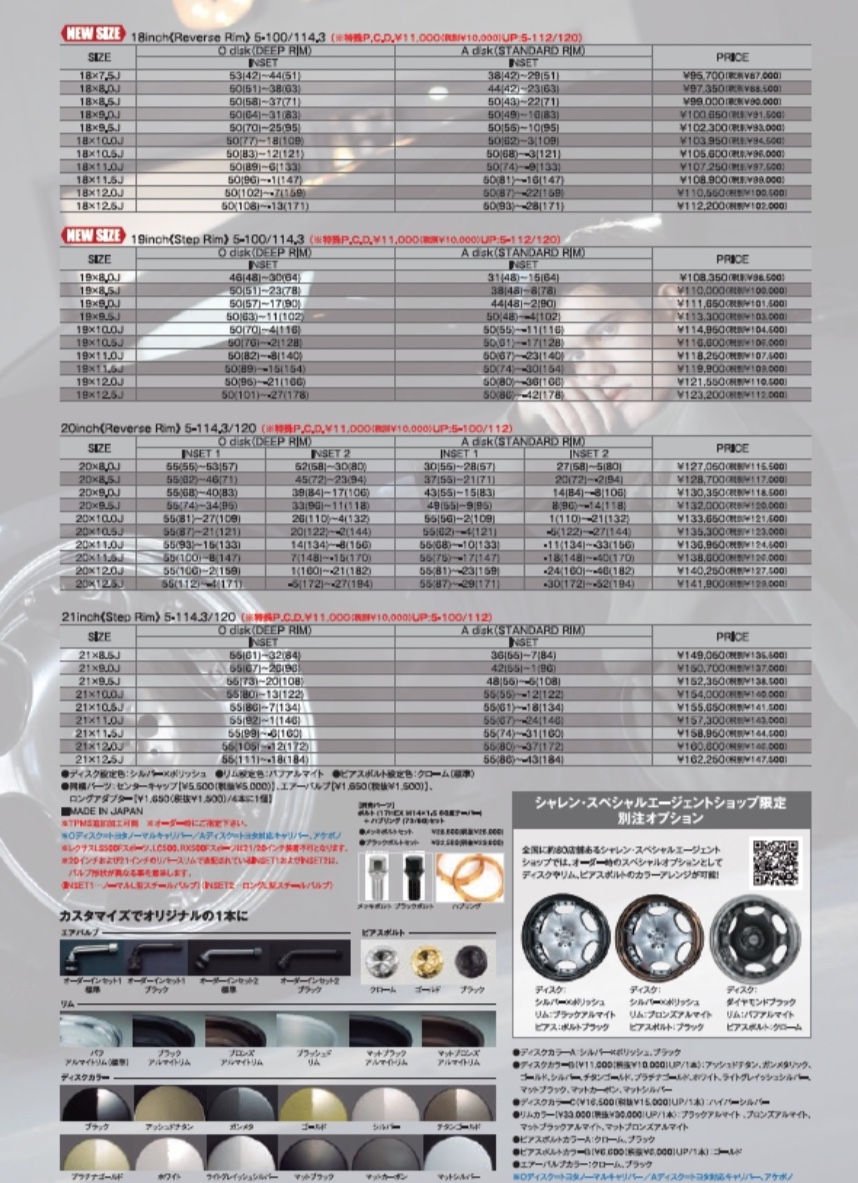 シャレン現役当時はビッグセダンでも18なら大口径、20ともなれば限られたトップユーザーが履くサイズでしたが、今や大口径化が進み21インチが純正の時代。ユーザー/ショップにもリサーチを行い、20/21インチの設定としました。20インチは当時の雰囲気そのままのリバースリム、21インチではステップリムを採用。当時は無かった新たな表情となります。