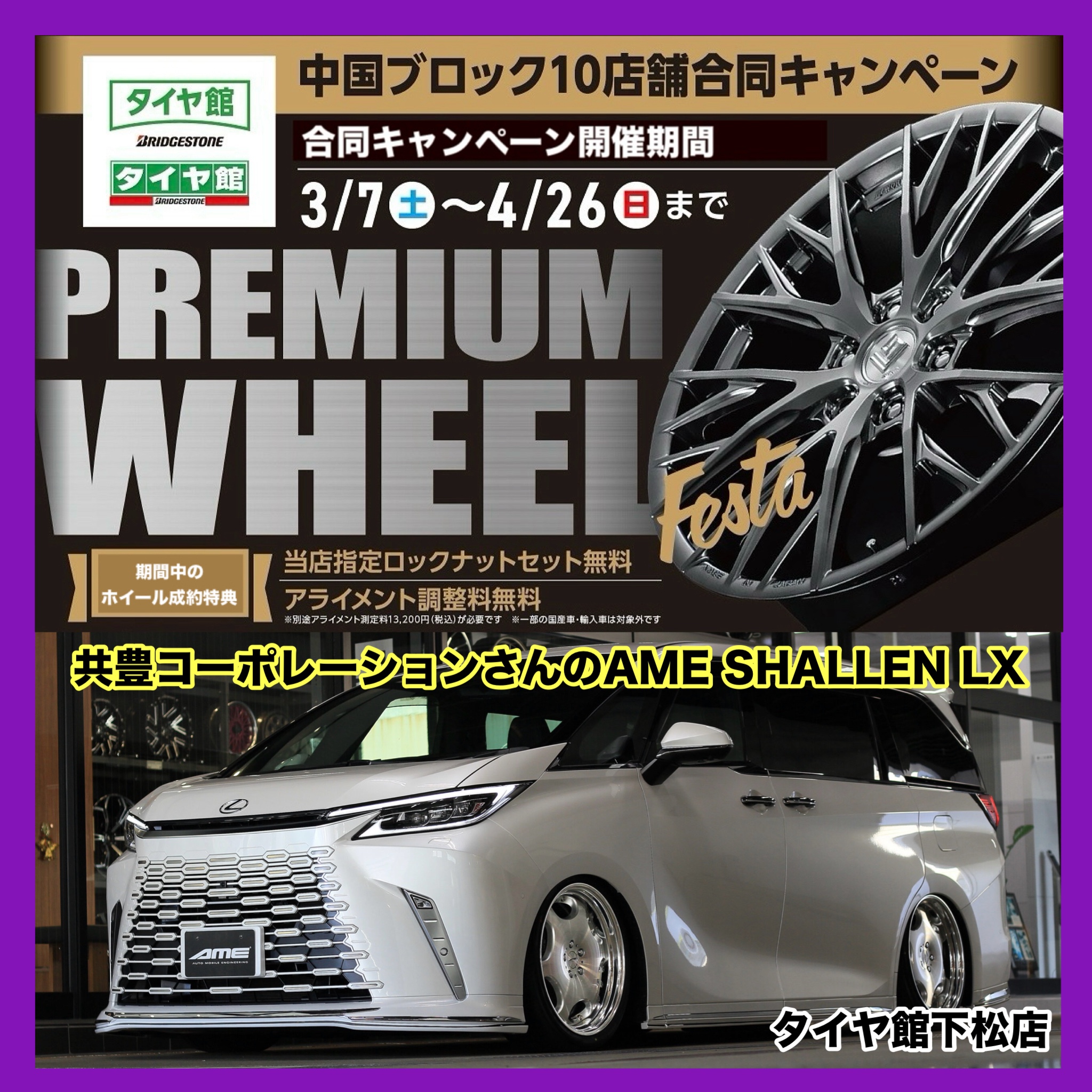 中国ブロックのタイヤ館10店舗で合同アルミホイールイベント開催中。