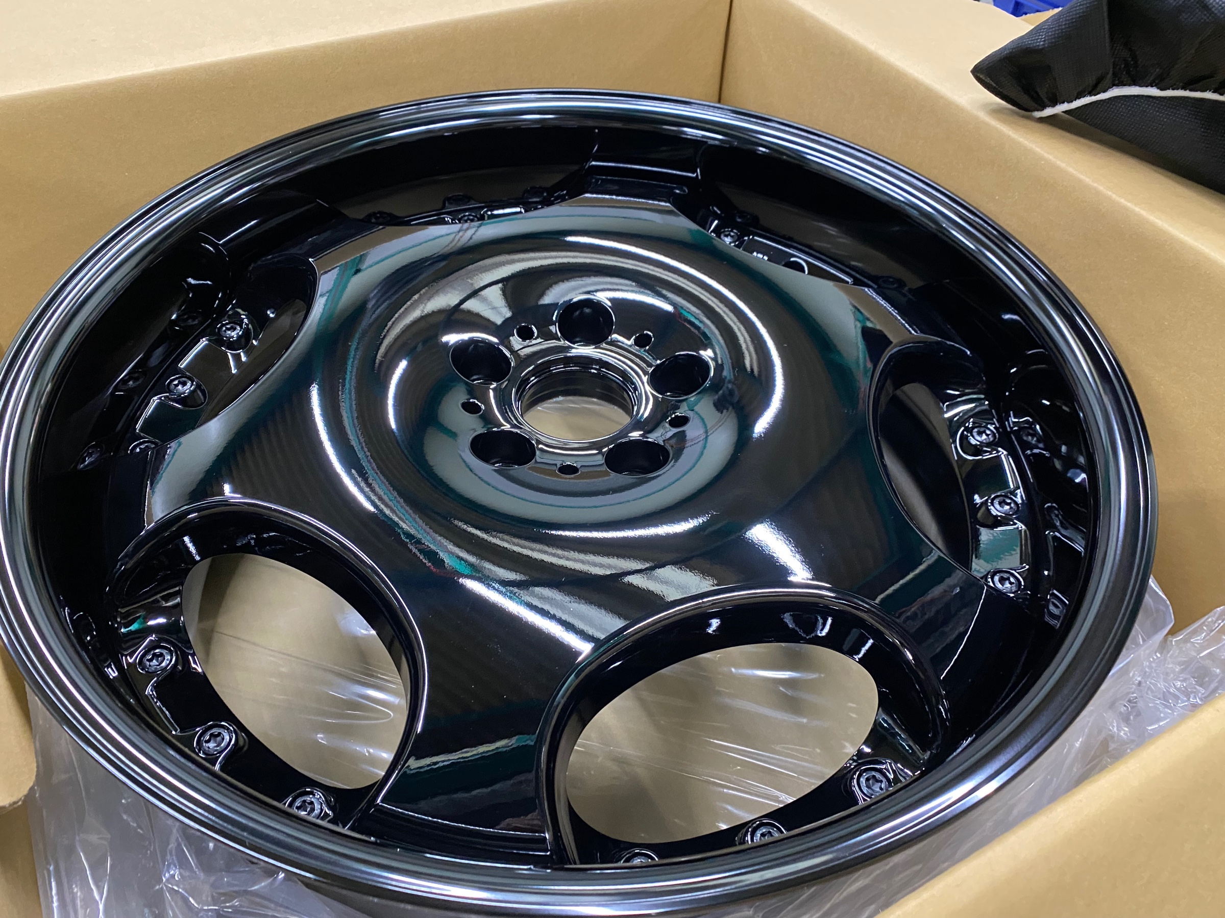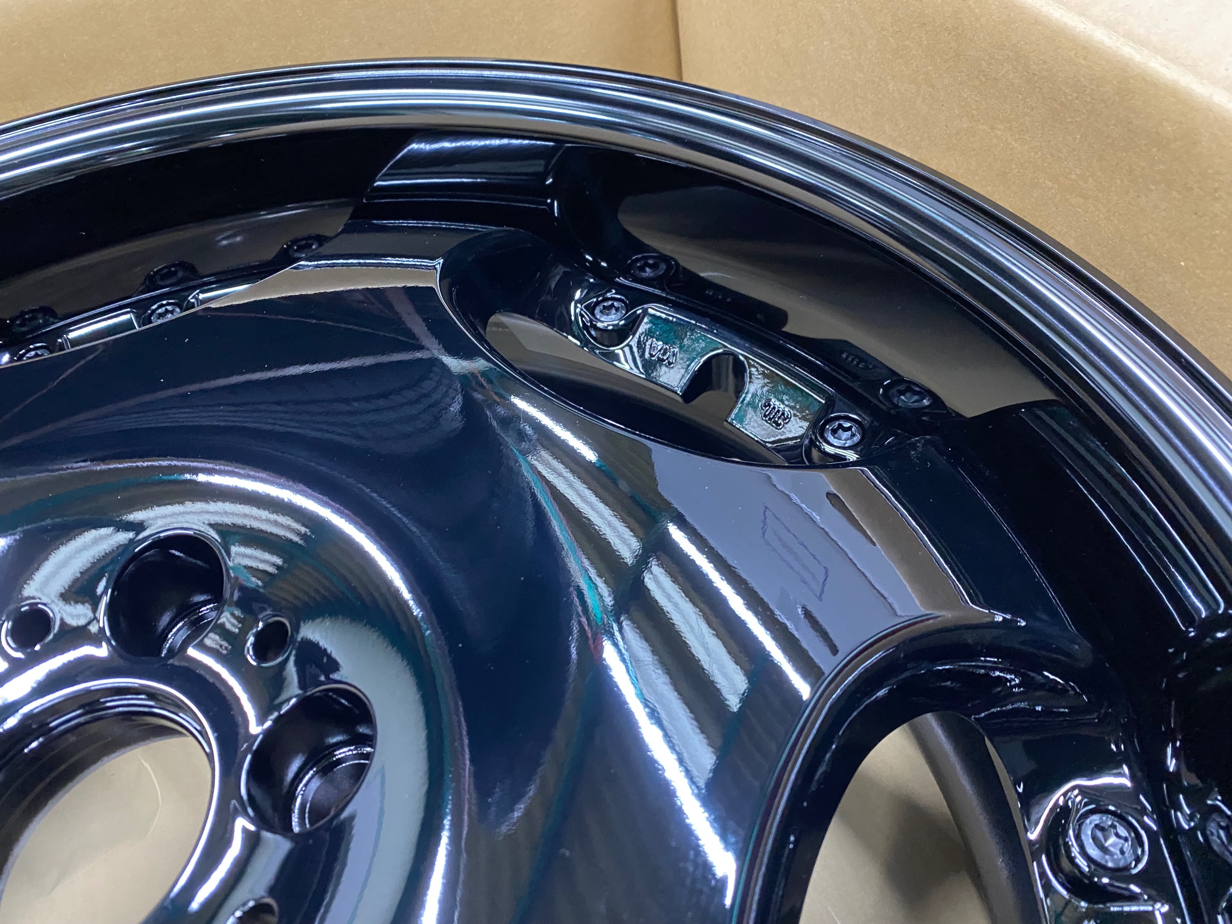 深淵に落ち込むような深リムは組付けホイール最大の魅力といっても過言ではありません。1mmでも深いリムを実現するためディスク形状、リム形状とも一新。当時のイメージそのままに細部を1mm、いやコンマ単位で煮詰め現代のクルマにもマッチするようリファイン。もちろんインセットは指定範囲内で1mm単位でオーダー可能、セイムサイズから理想のイメージそのままのツライチまで思いのままです。