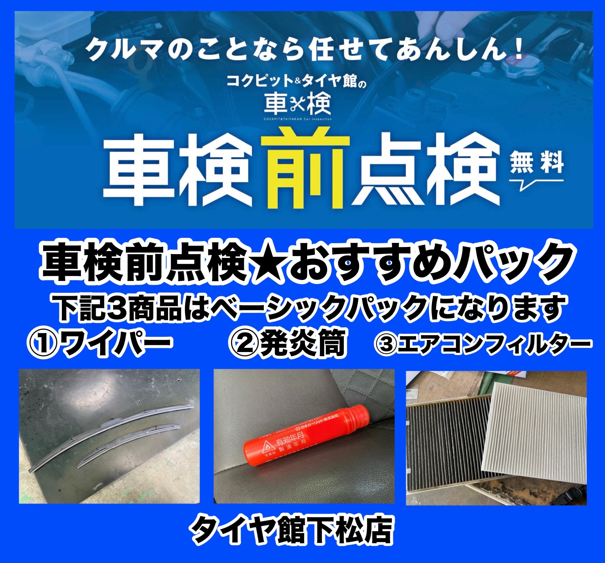 ⇒コクピット/タイヤ館の車検前点検、車検見積もり、車検のくわしい情報はコチラ