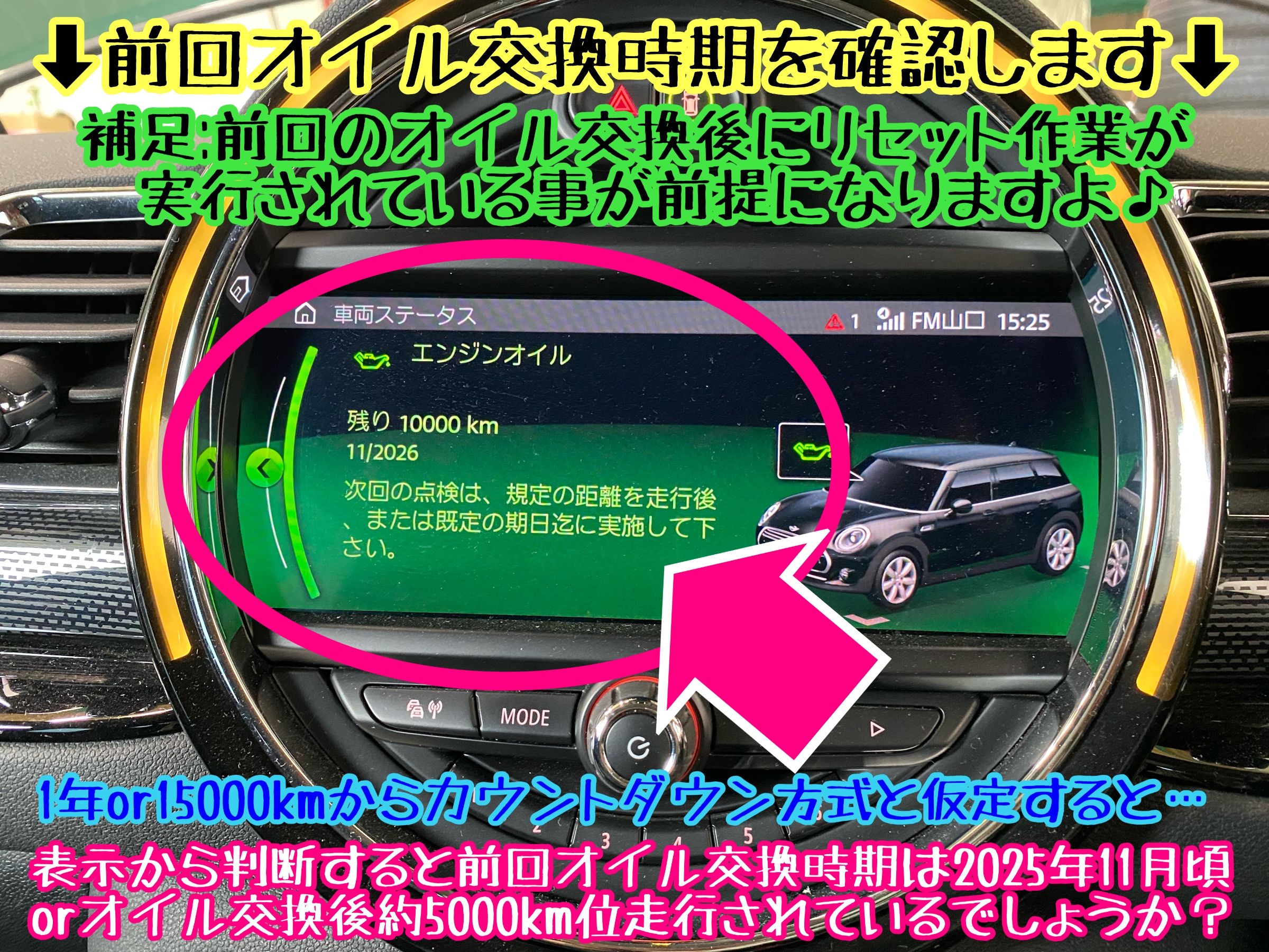 ミニ クラブマン F54型 定期的なエンジンオイル&オイルエレメント交換実施。