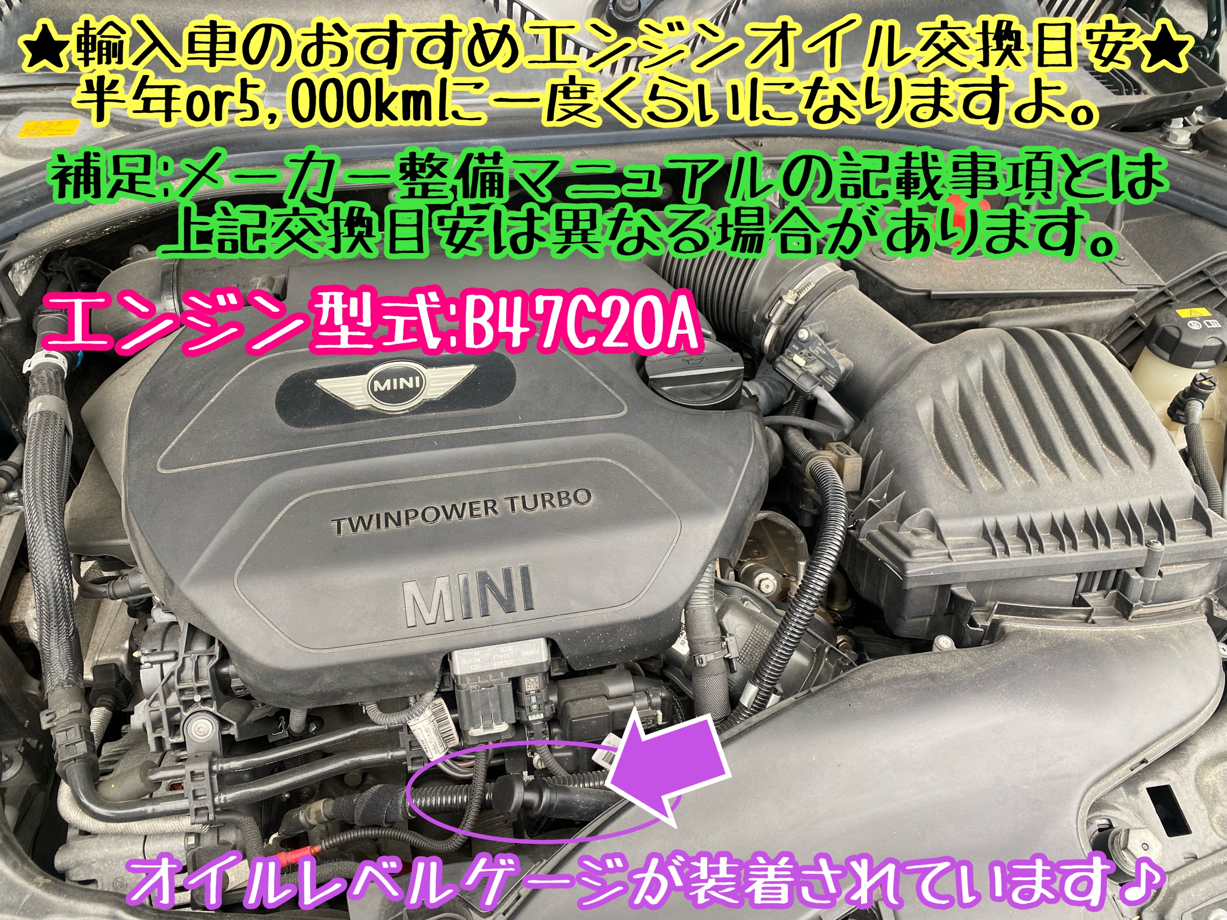 ミニ クラブマン F54型 定期的なエンジンオイル&オイルエレメント交換実施。輸入車対応エンジンホイル在庫あります〜ユーロマックスシリーズ。