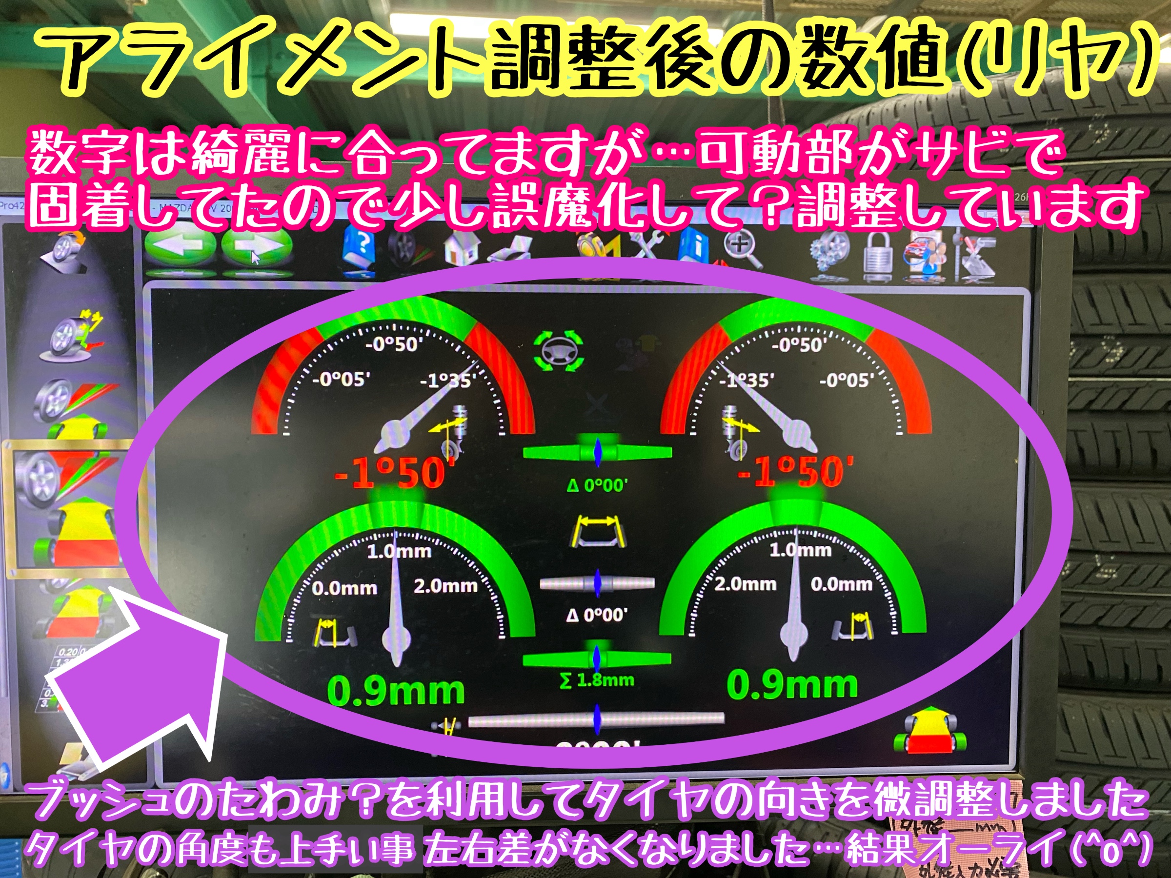タイヤの向きも角度も上手い事左右差がなくなりました。結果オーライ(^o^)
