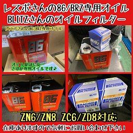 下松市や周南市周辺にお住まいの86/BRZ乗りの皆さま〜レスポさんの86/BRZ専用のエンジンオイ&BLITZさんのオイルフィルターの在庫ありますよ。