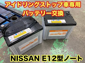 日産 E12型ノート アイドリングストップ車専用バッテリー装着〜バッテリー交換後に積算リセット実施です。