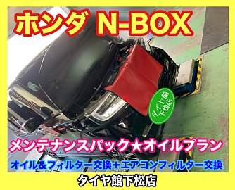 おはようございます。 いつもタイヤ館下松店のWEBをご覧頂き…ありがとうございます(^O^)タイヤ館下松店の越智です。 皆さまに…少しでも有益な情報や役立つ情報を発信出来るように日々更新していきたいと思います。 ホンダ N-BOX 定期的なエンジンオイル オイルフィルター交換。 メンテナンスパック...