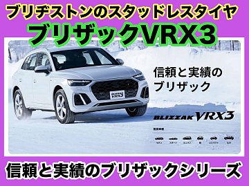 おはようございます。 信頼と実績のブリザック スタッドレスタイヤ「ブリザック VRX3」 いつもコクピット・タイヤ館のご利用誠にありがとうございます。 今回は、長年にわたりブリザックブランドを牽引してきた、まさに信頼と実績のブリザックを 体現しているといっても過言ではない、「BLIZZAK VRX...