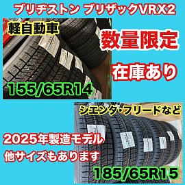 数量限定サイズ限定ですが…在庫あります。2025年製造ブリヂストン ブリザックVRX2。お求めやすい価格です。