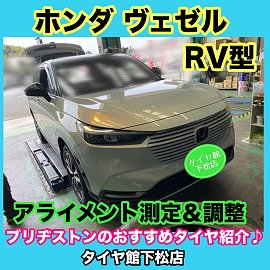 おはようございます。 いつもタイヤ館下松店のWEBをご覧頂き…ありがとうございます(^O^)タイヤ館下松店の越智です。 皆さまに…少しでも有益な情報や役立つ情報を発信出来るように日々更新していきたいと思います。 ホンダ ヴェゼル RV型 ブリヂストンのおすすめタイヤ紹介♪ 定期時なアライメント調...