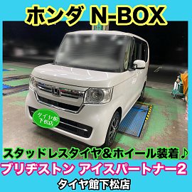 HONDA N-BOX まだまだ寒い日が続きます〜スタッドレスタイヤ&アルミホイール装着。ブリヂストン アイスパートナー2。
