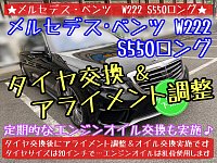 メルセデス・ベンツ W222 S550ロング タイヤ交換後のアライメント調整&オイル交換実施です①