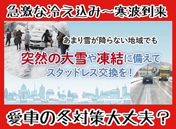 寒波到来で急激な冷え込みが続きます〜愛車の冬支度…お済みでしょうか。