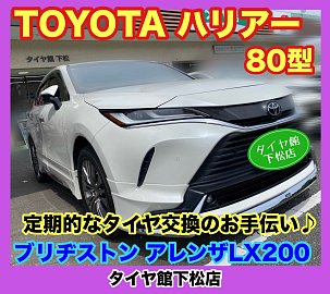 トヨタ ハリアー 80型 定期的なタイヤ交換のお手伝い。装着したタイヤはブリヂストン アレンザLX200。