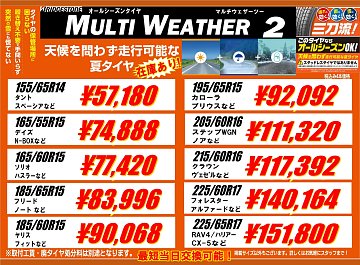 【最短即日交換】ブリヂストン の オールシーズンタイヤ 在庫あり!軽自動車・コンパクトカー・ミニバン・SUVに対応!【マルチウェザー2】★久喜市・加須市・白岡市・菖蒲・鷲宮・幸手・蓮田・予約★