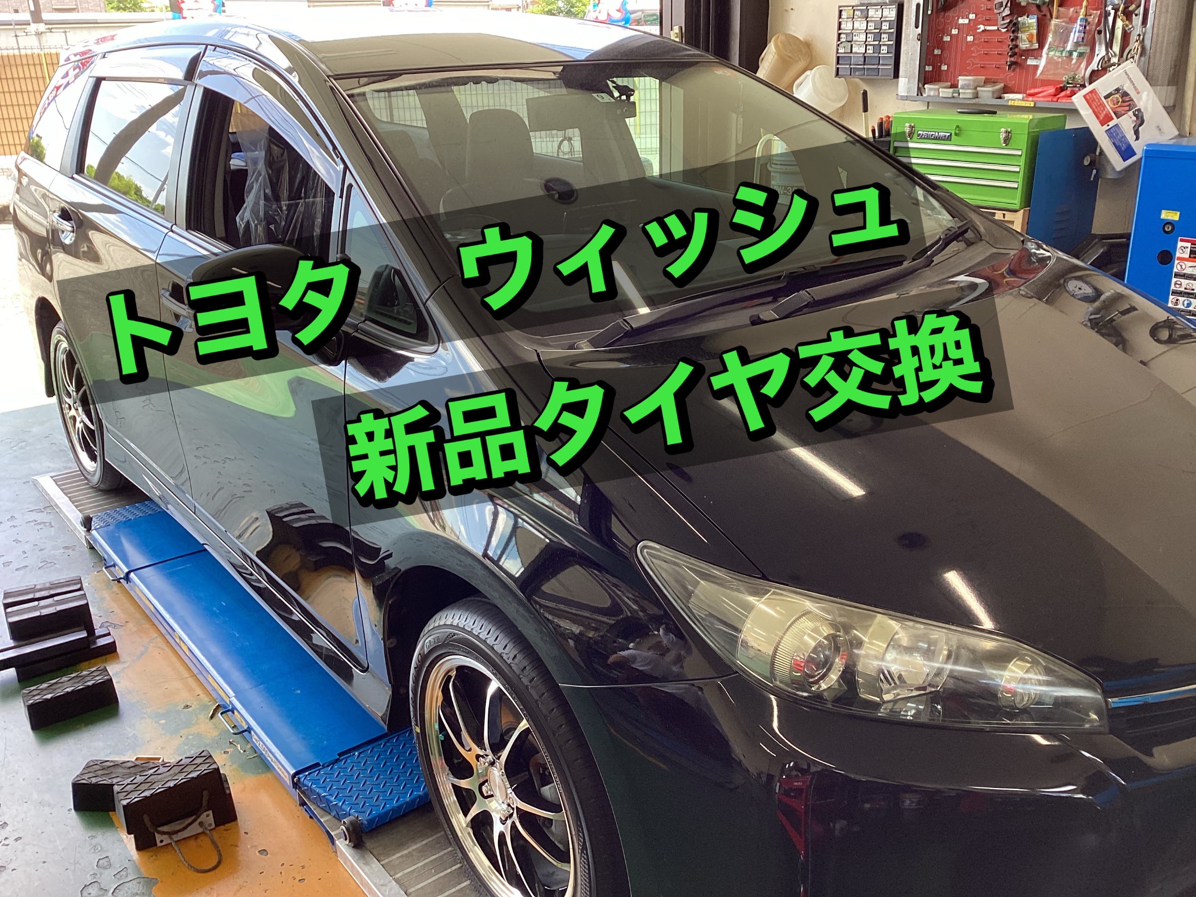 本日はウィッシュにて新品タイヤ4本の交換を承りました。