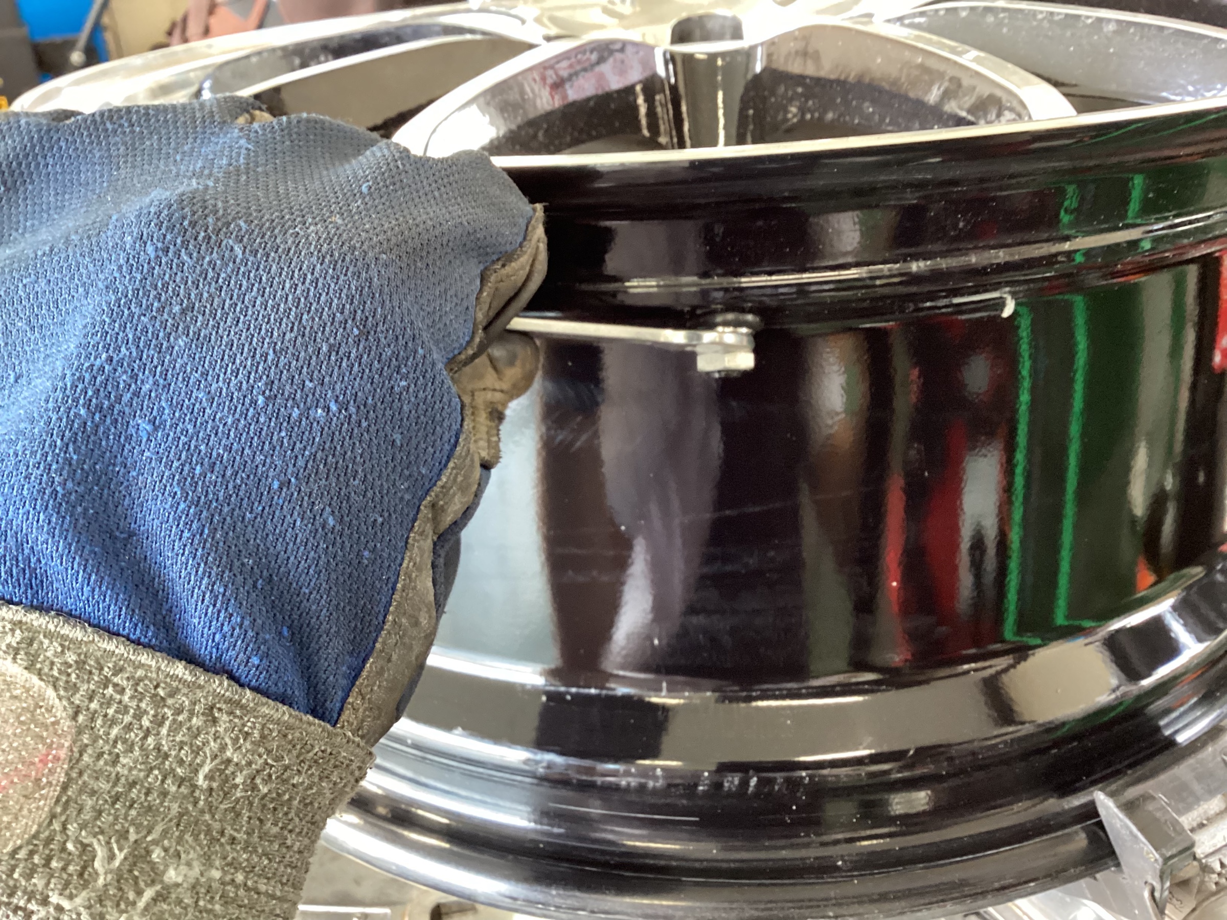 ホイールを清掃後、新品タイヤを装着していきます。