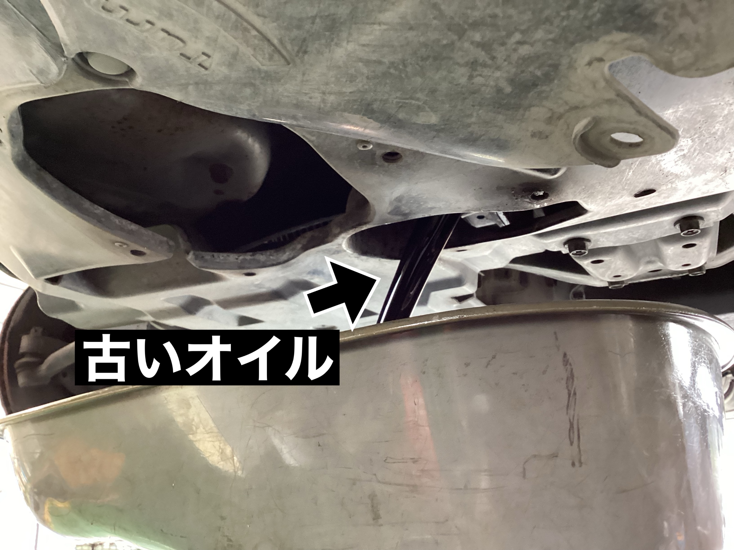 オイル交換は、車体をリフトアップし、車体下から古いオイルを抜きます。